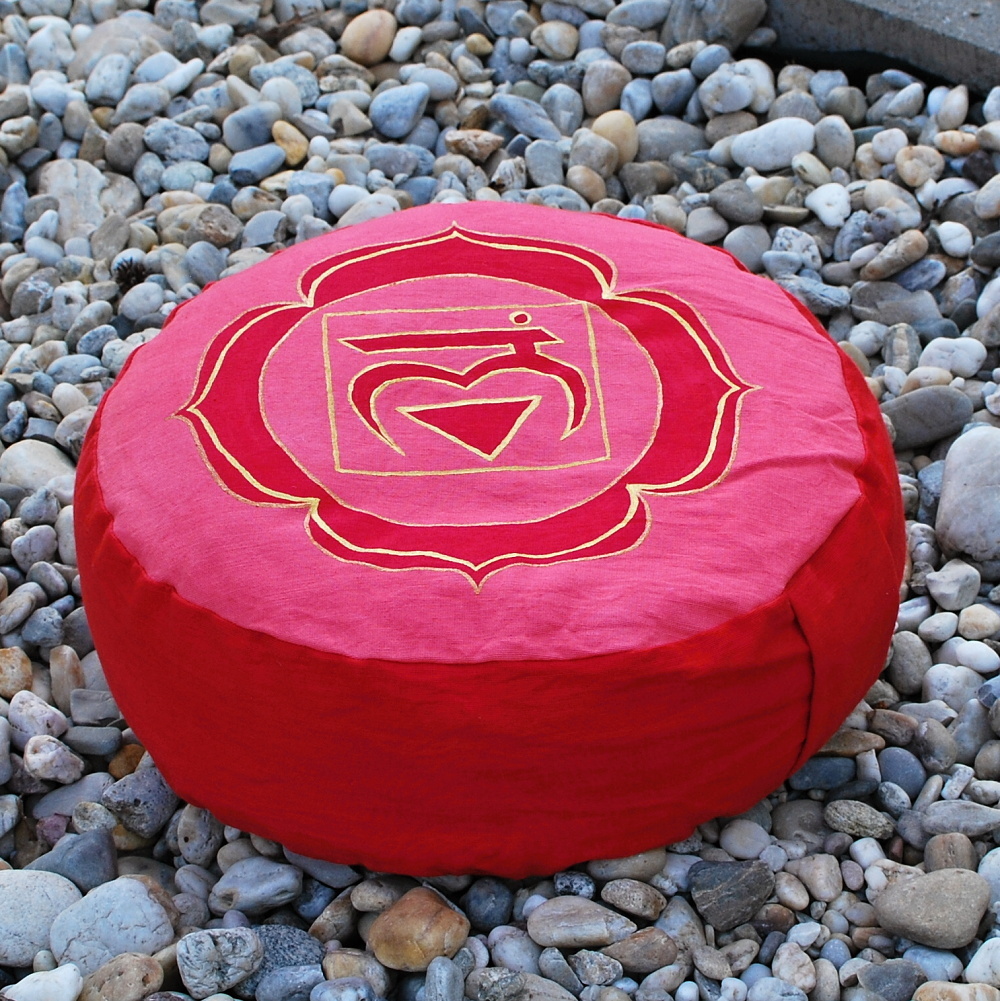 Meditační polštář v červeném provedení s malbou a úchytem pro snadnější přenášení!