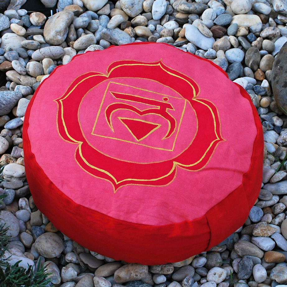 Meditační polštář v červeném provedení s malbou a úchytem pro snadnější přenášení!