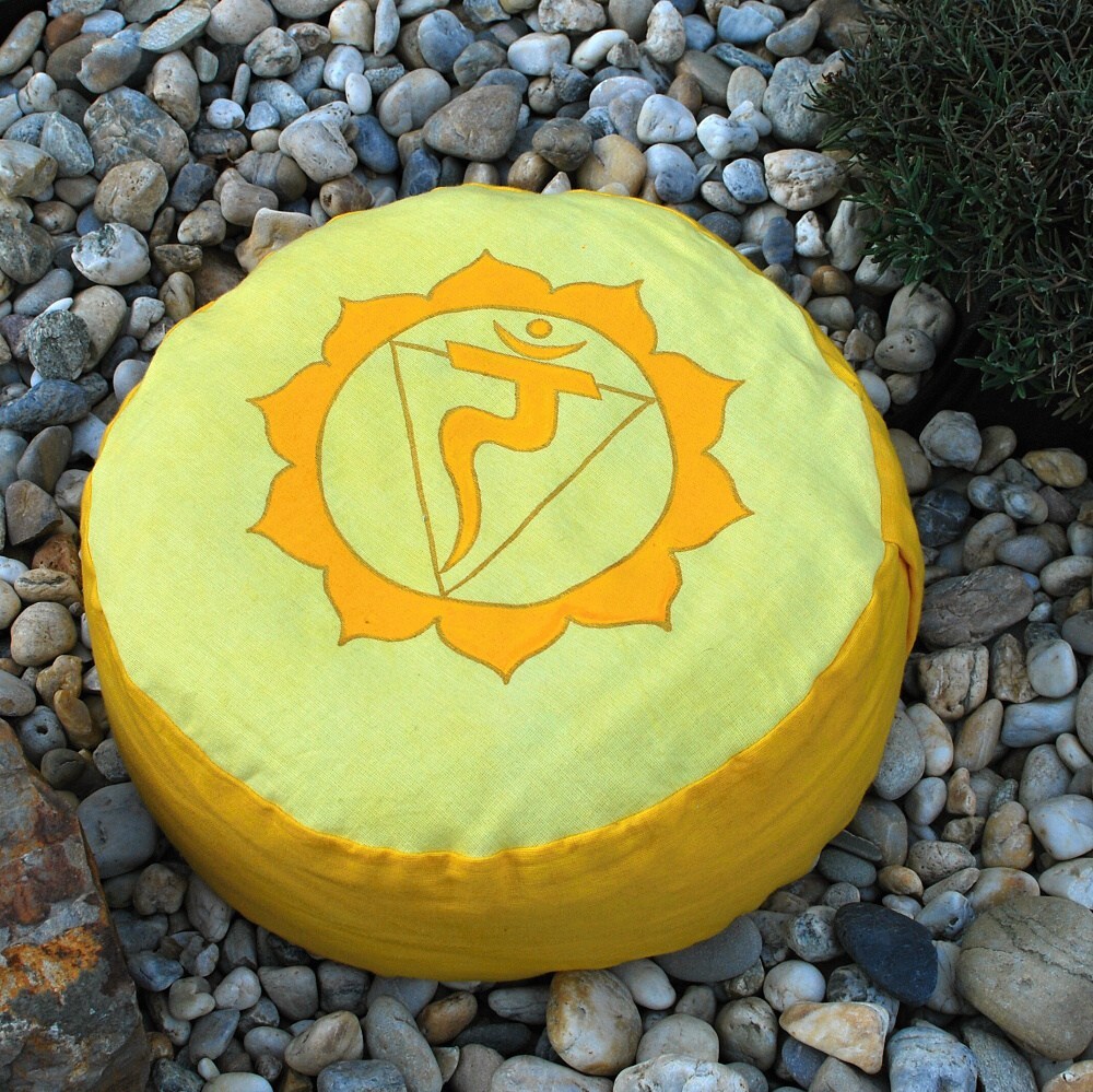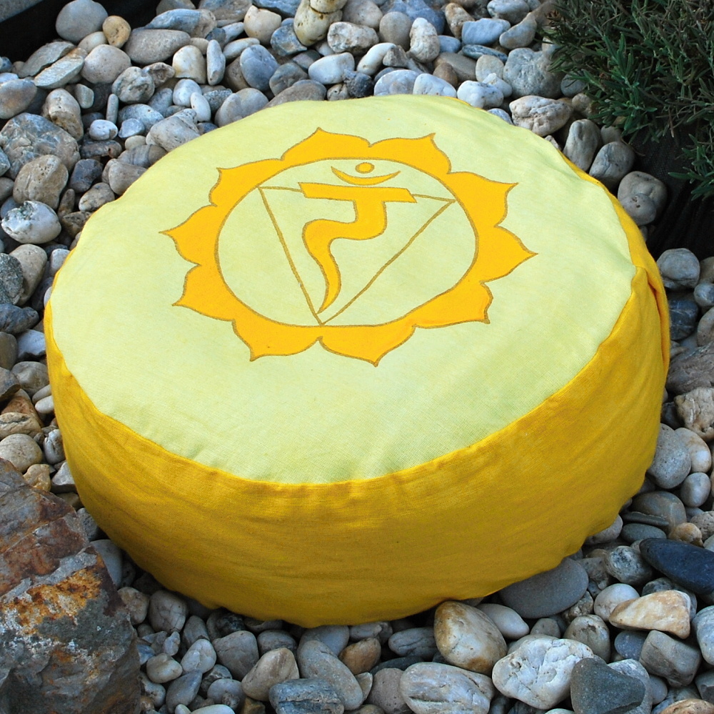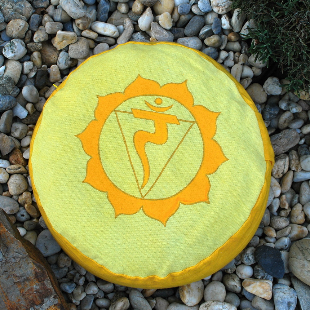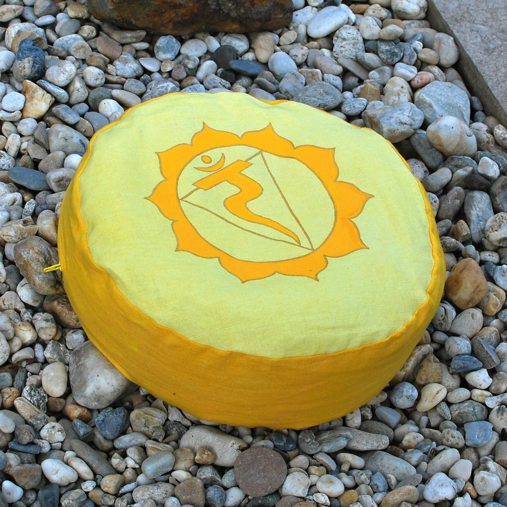 Meditační polštář ve žlutém provedení s malbou a úchytem pro snadnější přenášení!