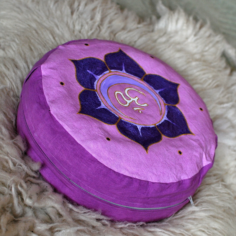 Meditační polštář ve fialovém provedení s malbou a úchytem pro snadnější přenášení!
