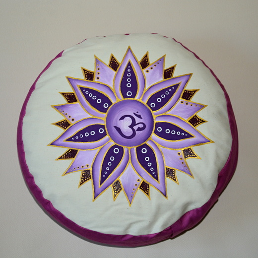 Meditační polštář ve fialovém provedení s malbou a úchytem pro snadnější přenášení!
