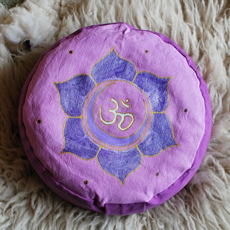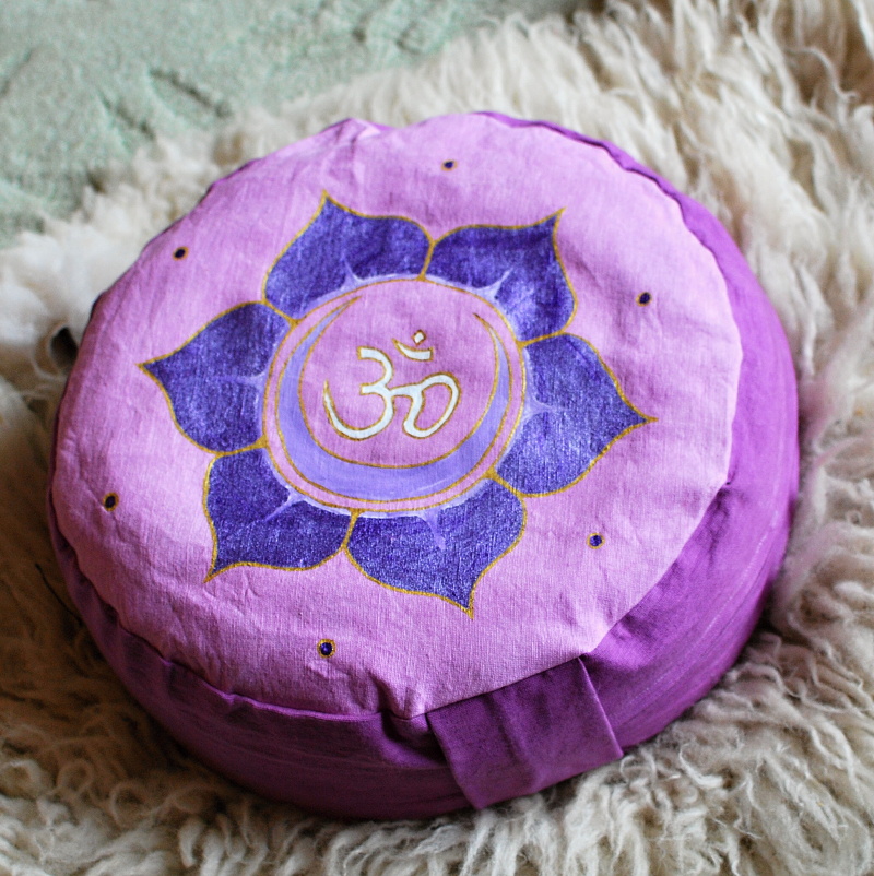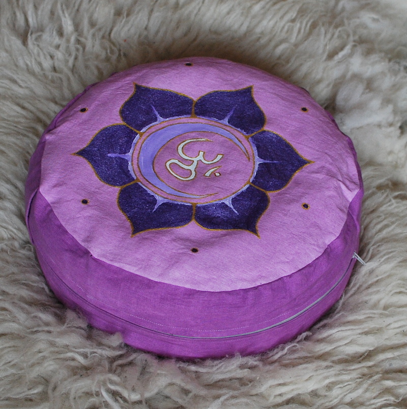 Meditační polštář ve fialovém provedení s malbou a úchytem pro snadnější přenášení!
