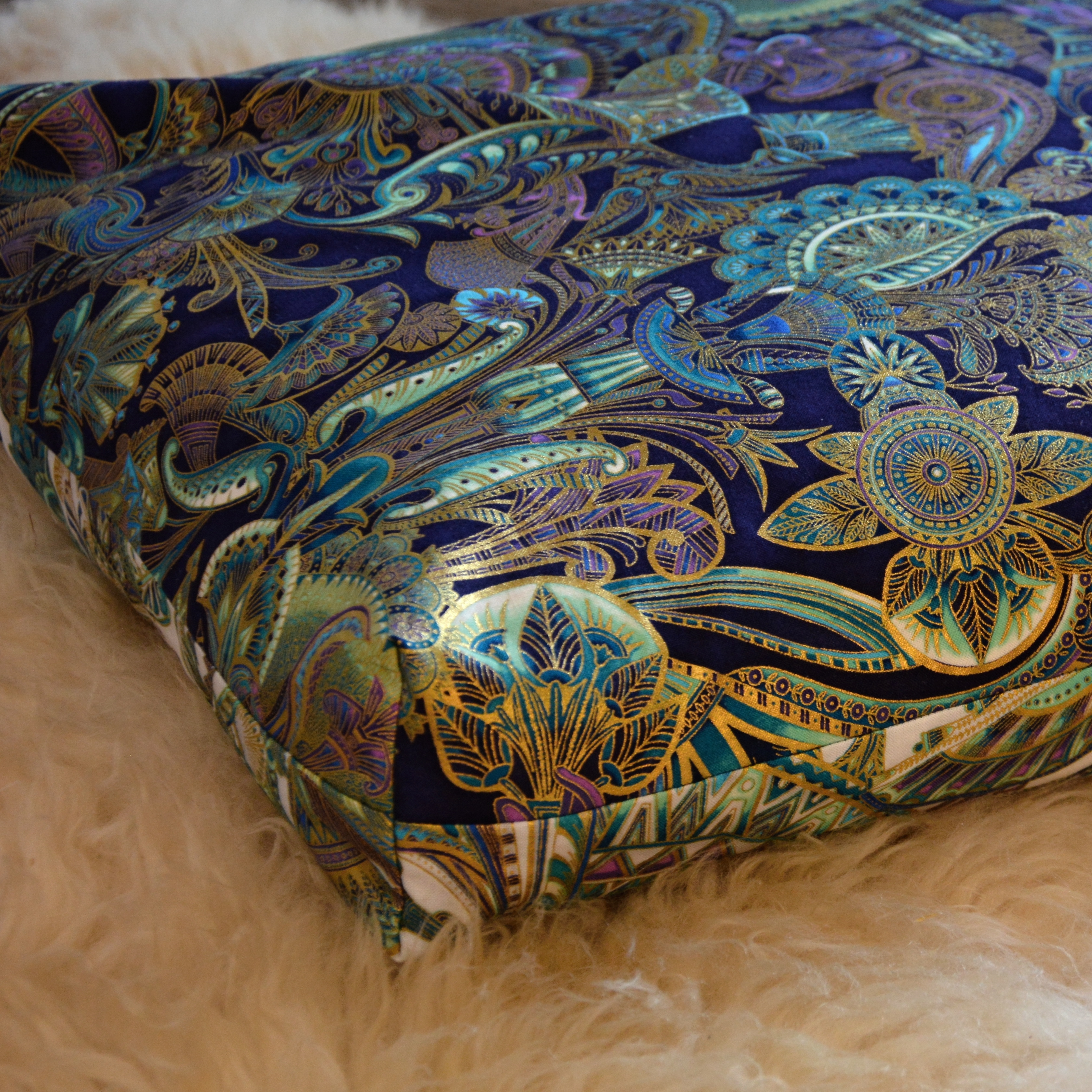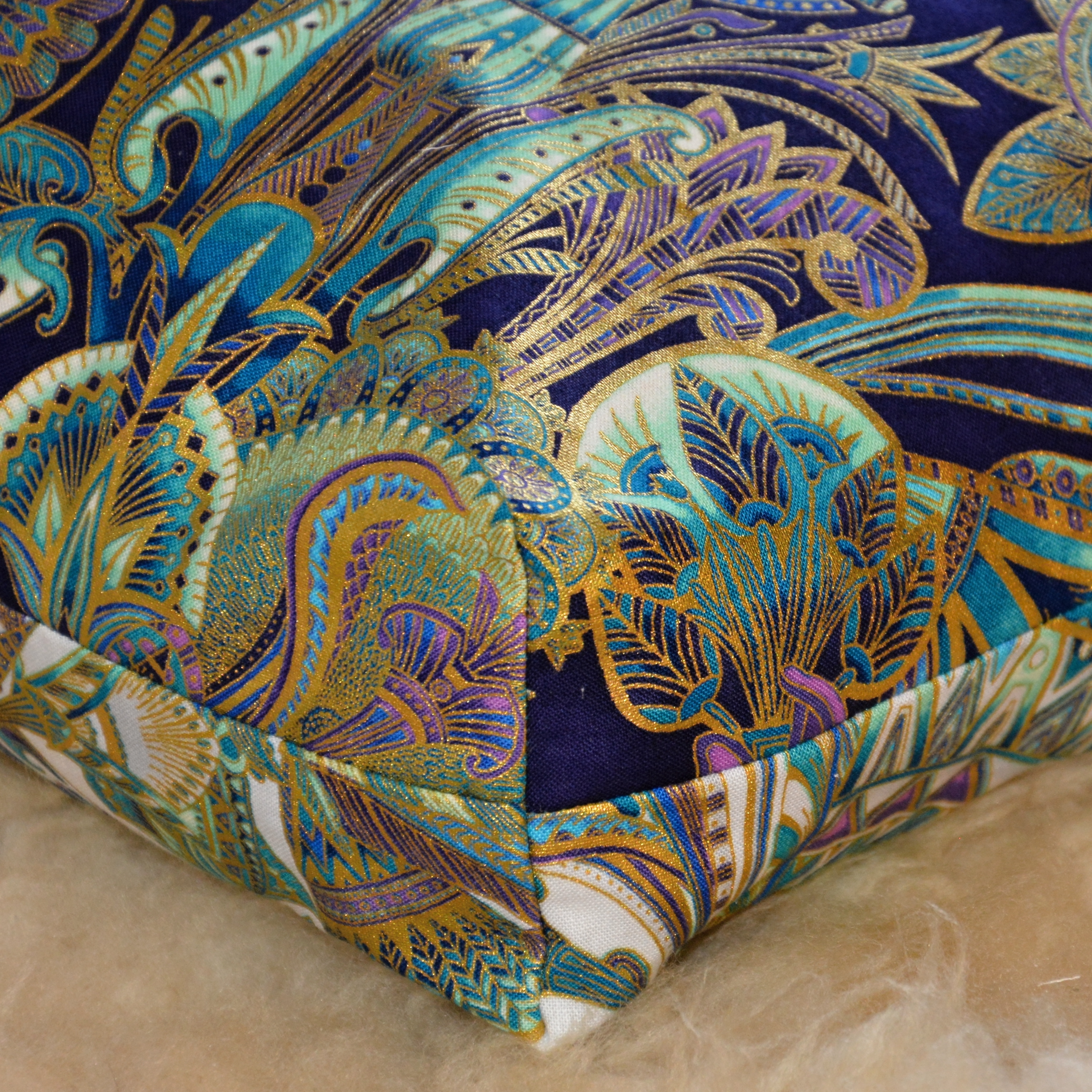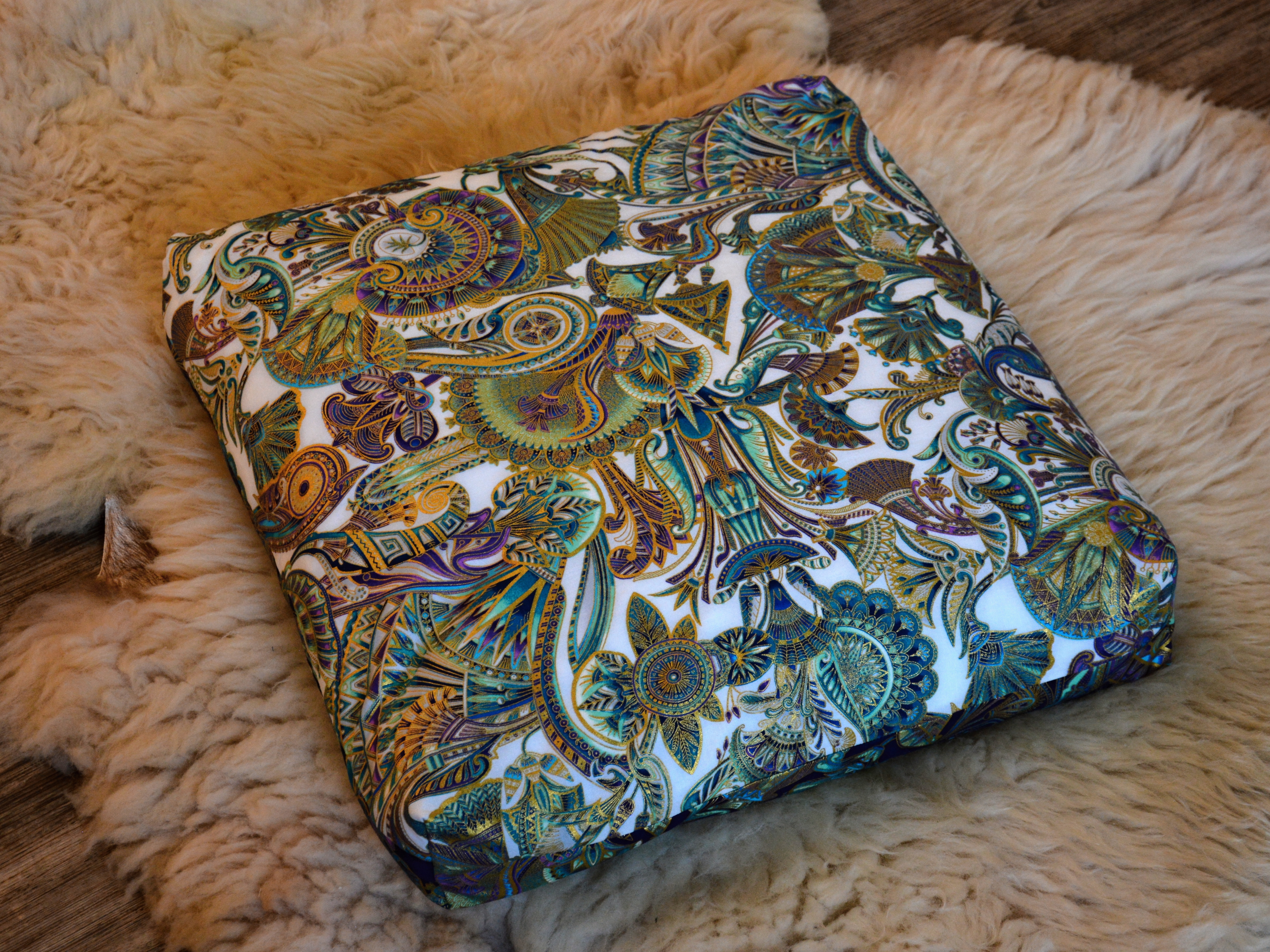 Podsedák ve tvaru čtverce z kvalitního amerického plátna se zlatotiskem.
