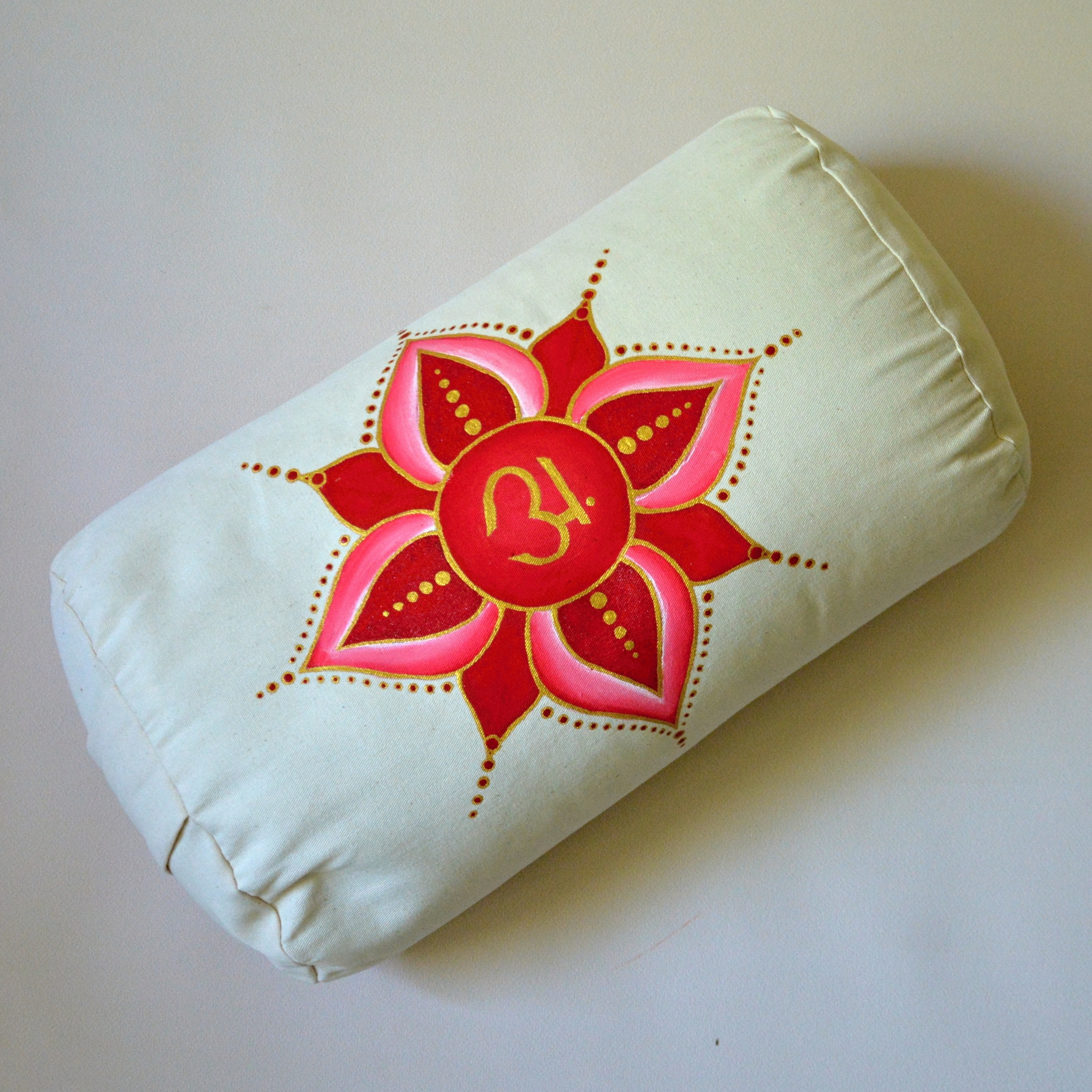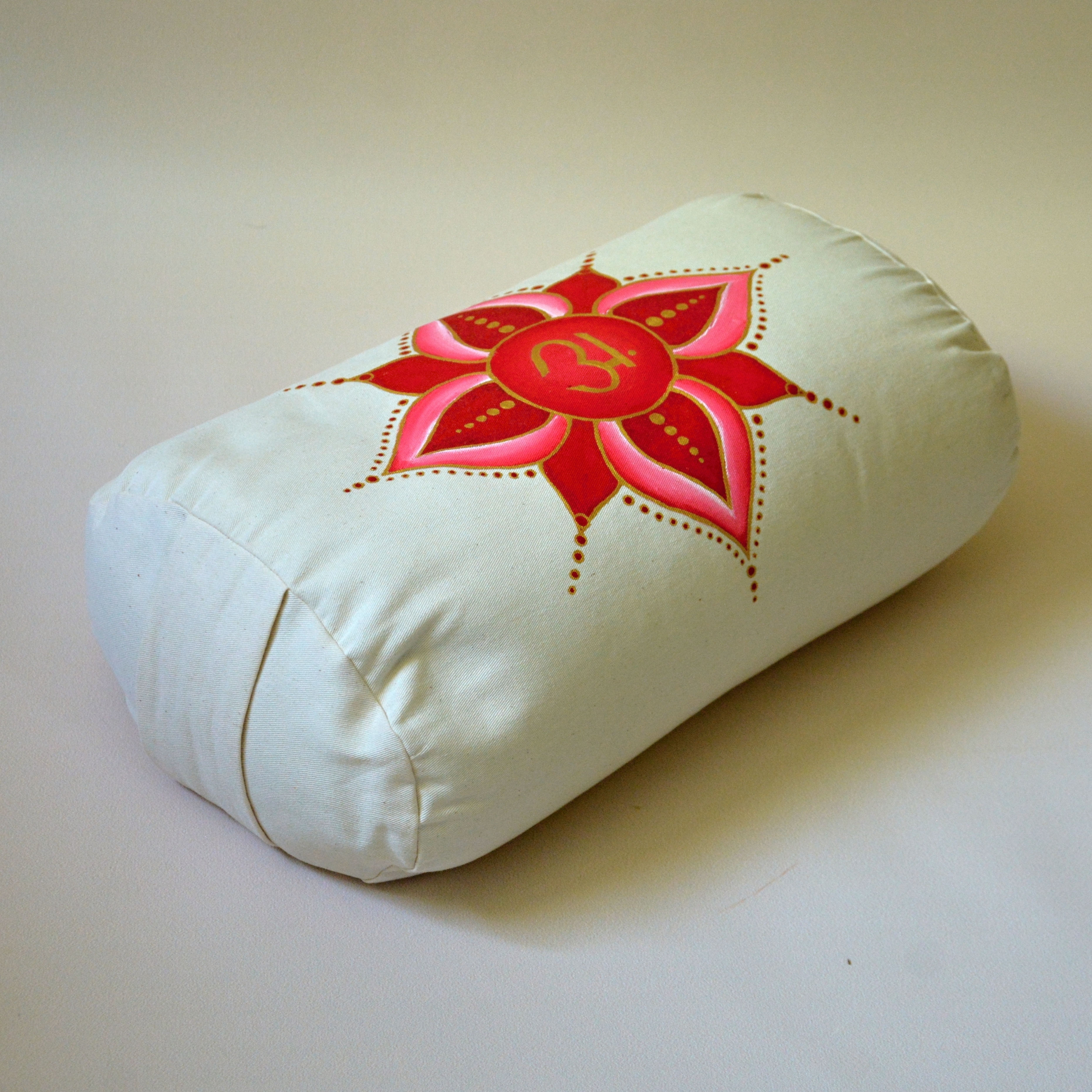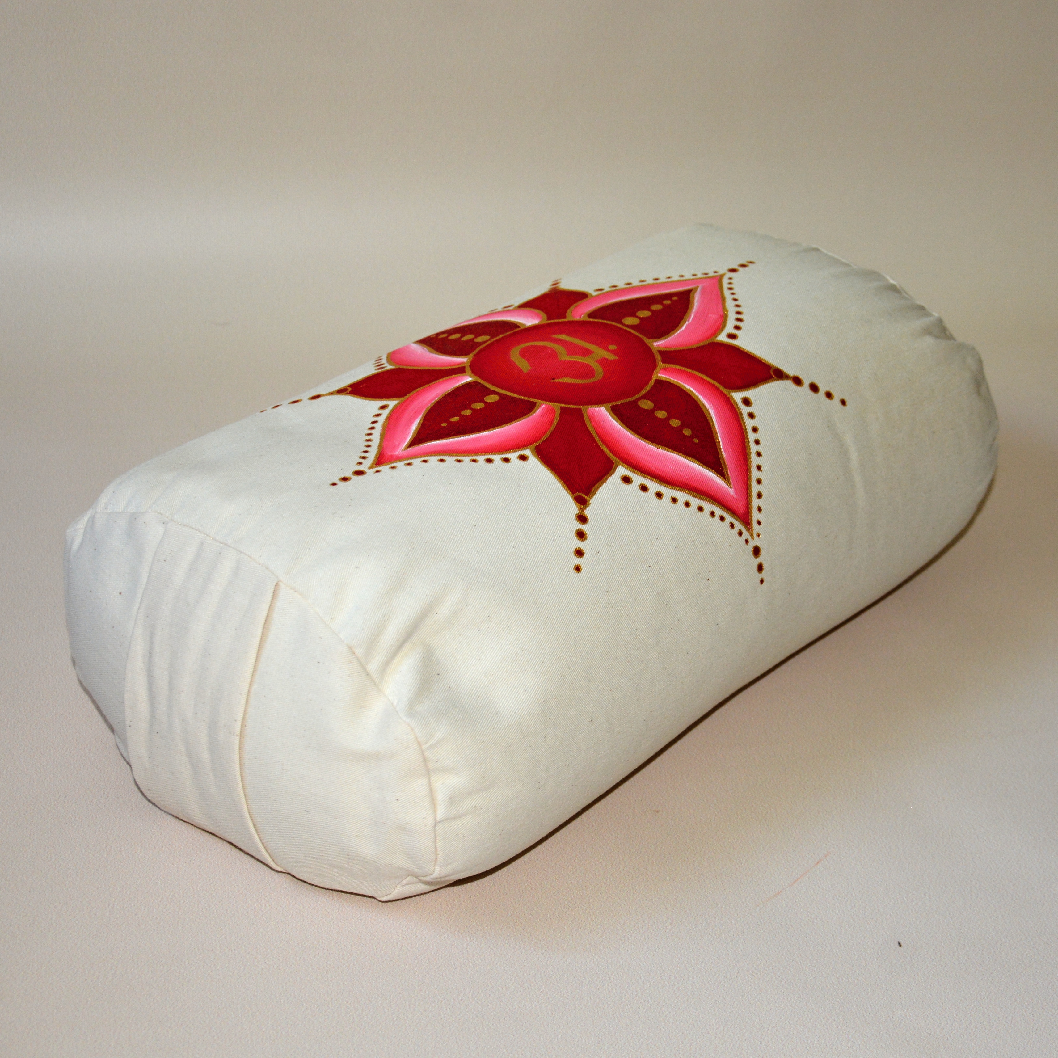 Bolster je ušitý ze dvou vrstev, stejně jako meditační polštáře. Horní vrstvu tvoří sundavatelný obal na zip. Obal je ze 100% organické bavlny v keprové vazbě. Malba kvalitními barvami na textil. Obal je pratelný v pračce.