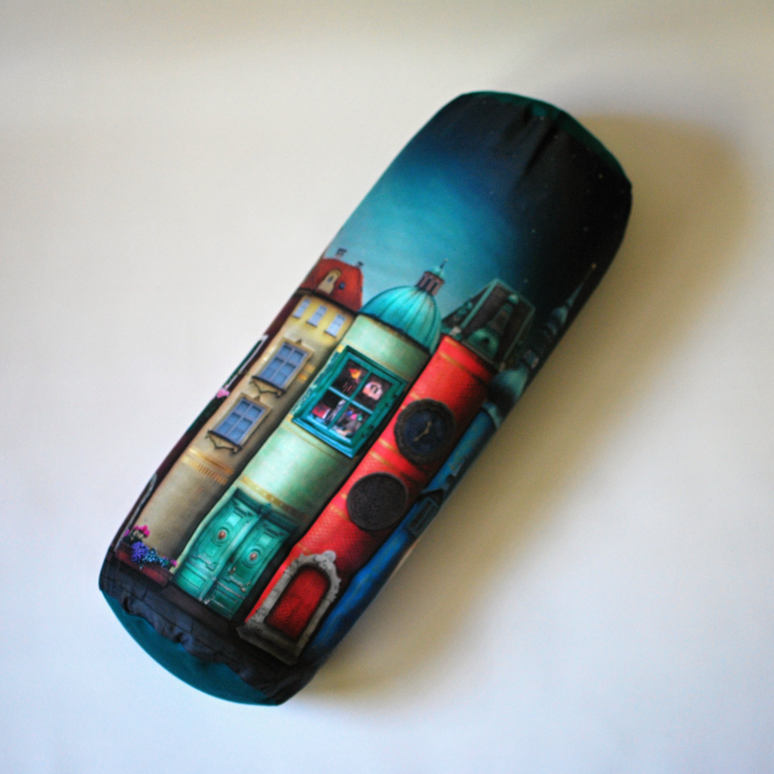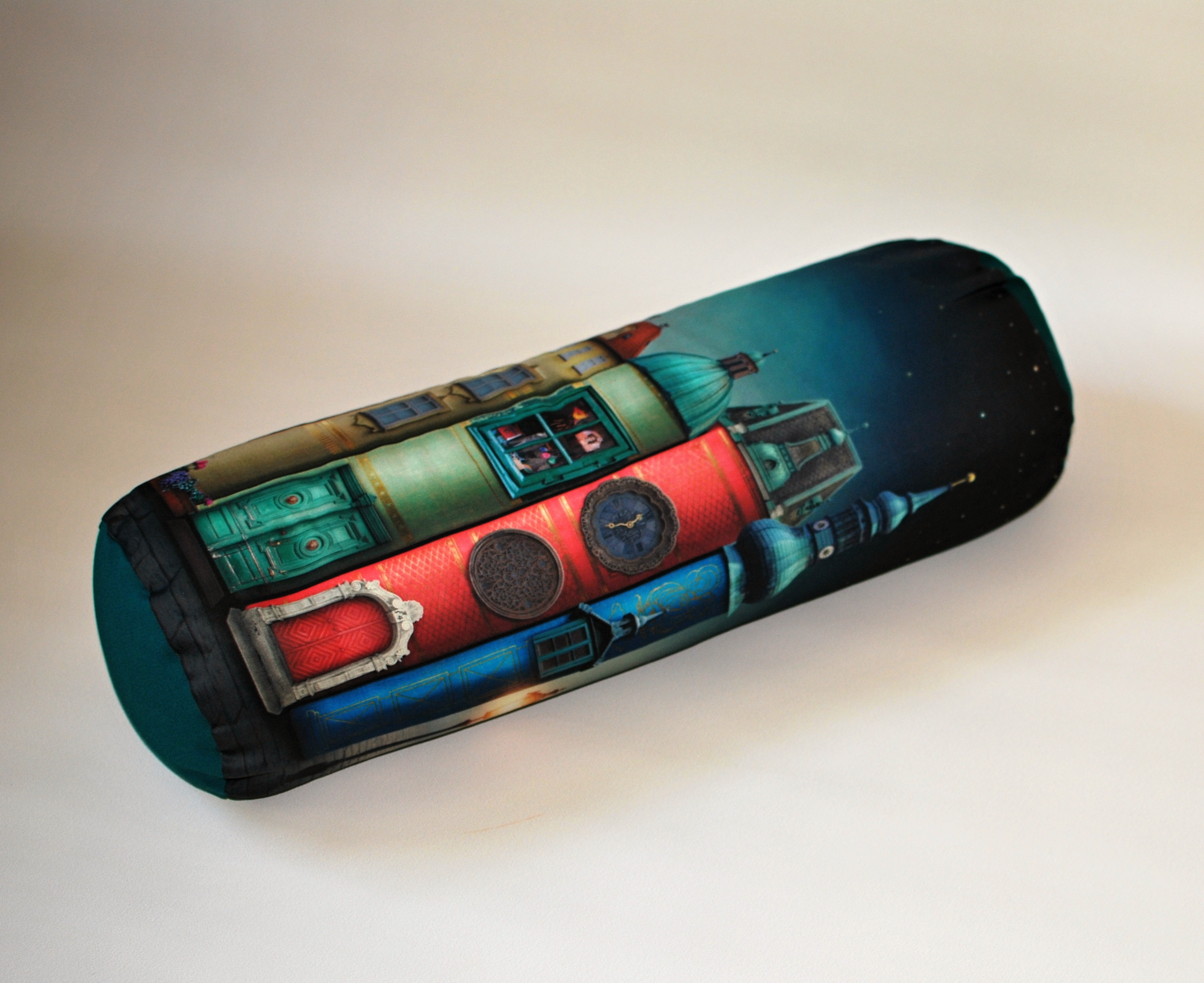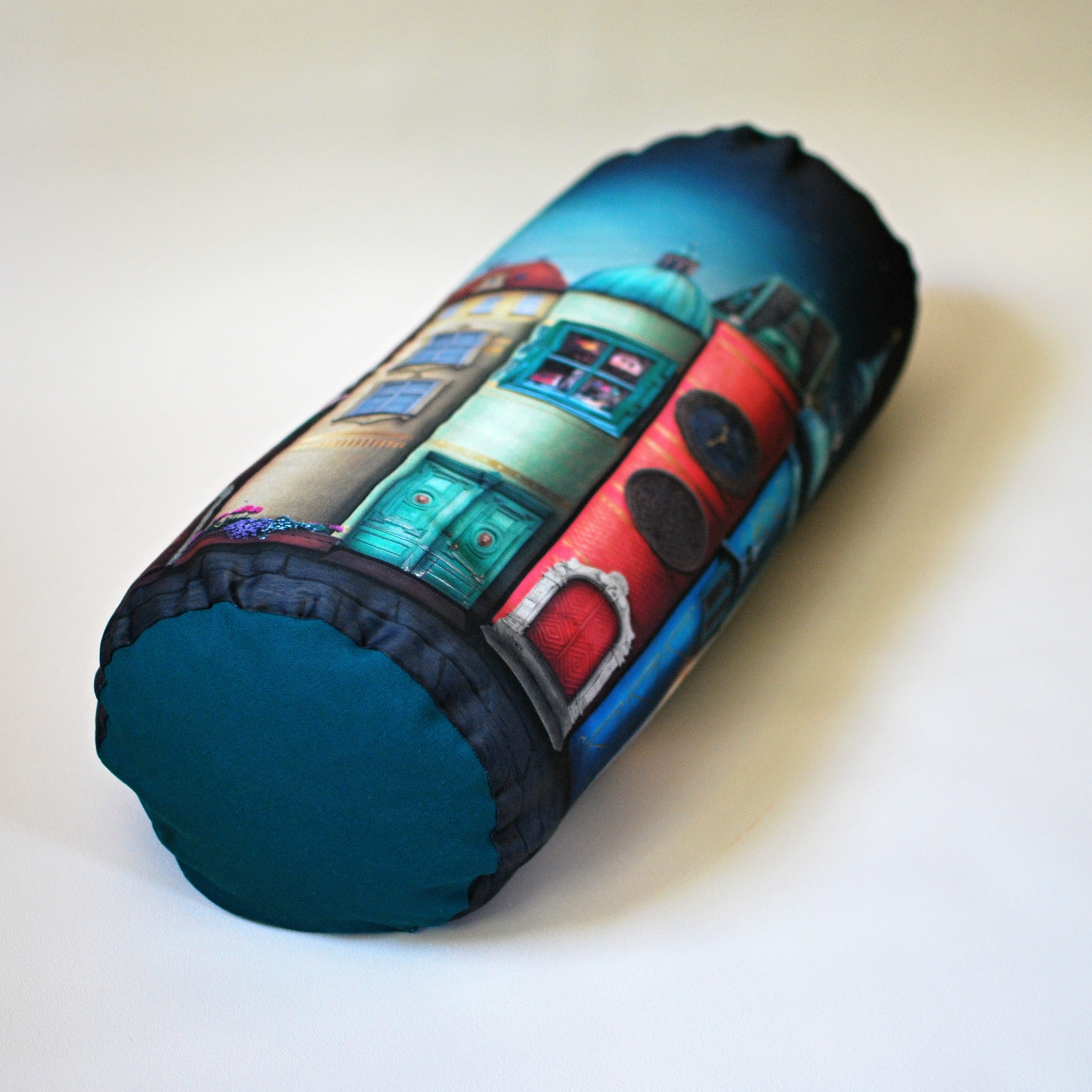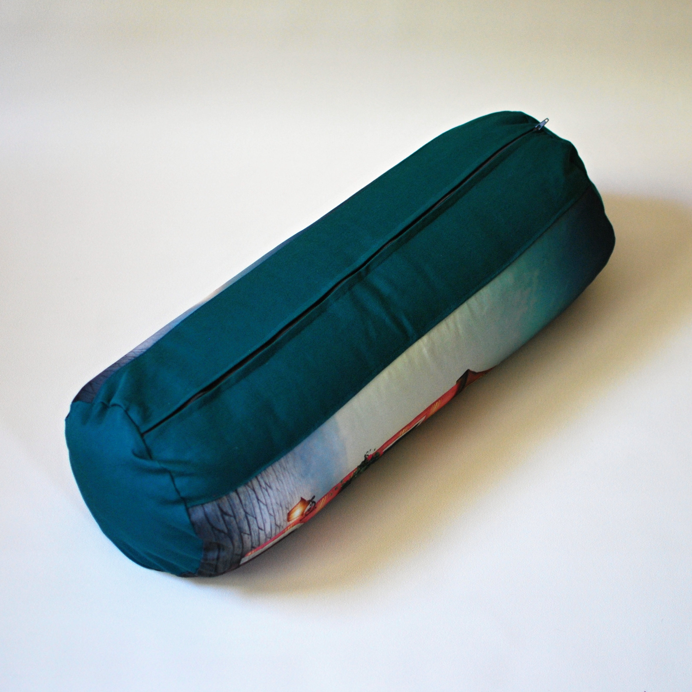 Univerzální polštář ve tvaru válečku, potisk smotivem od designérky Eleny Schweitze. Bolster plněný bio pohankovými slupkami. Ideální pod hlavu či jako opora bederní páteře při sezení.