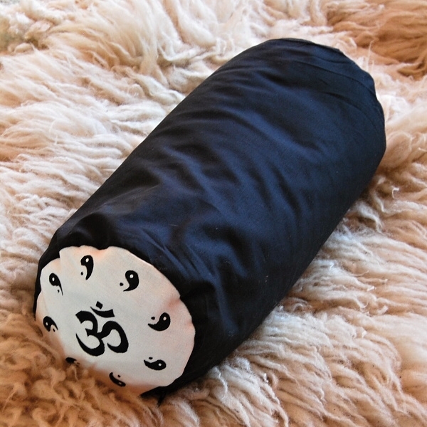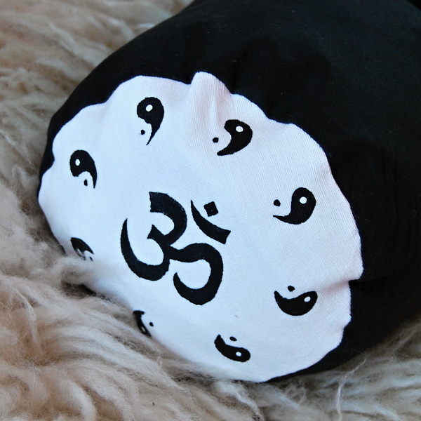 Univerzální polštář ve tvaru válečku, v černo-bílém provedení a malbou, plněný bio pohankovými slupkami. Ideální pod hlavu či jako opora bederní páteře při sezení.