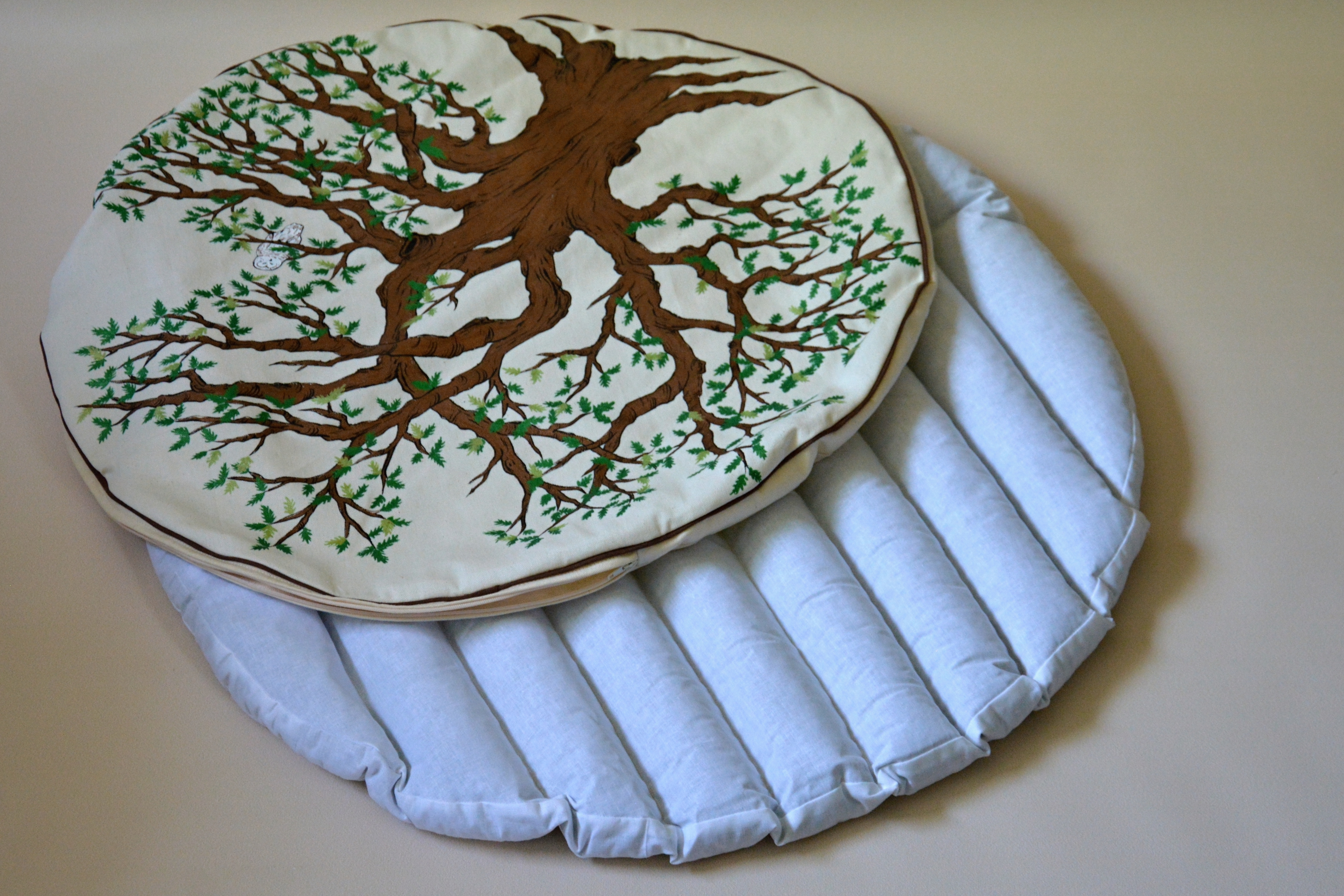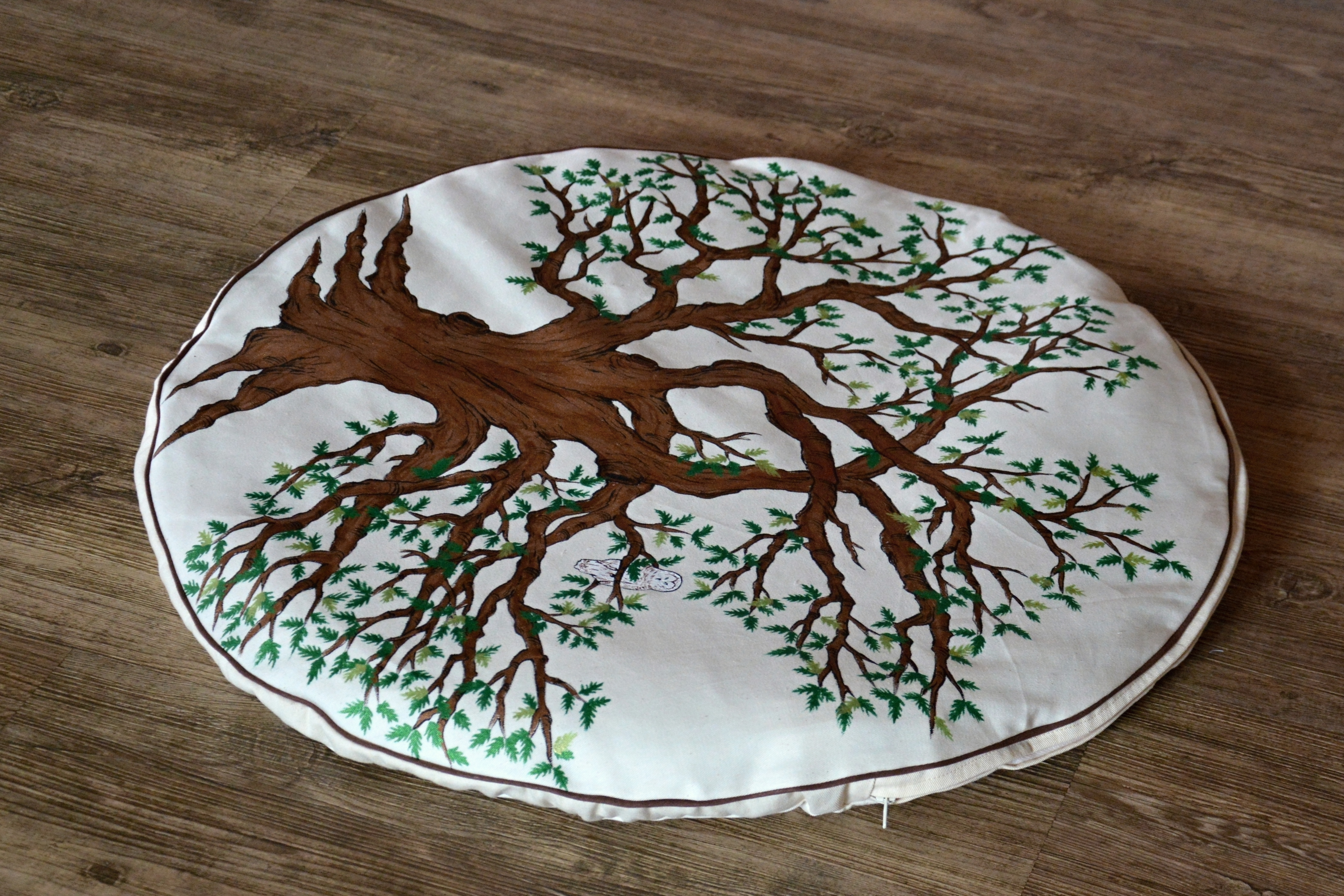 Obal podložky je z pevné organické bavlny bez chemického barvení - tedy v barvě natural . Obal má zip, je tedy možné jej sundat a vyprat. Malováno kvalitními barvami a obal lze prát v pračce na šetrný program.
