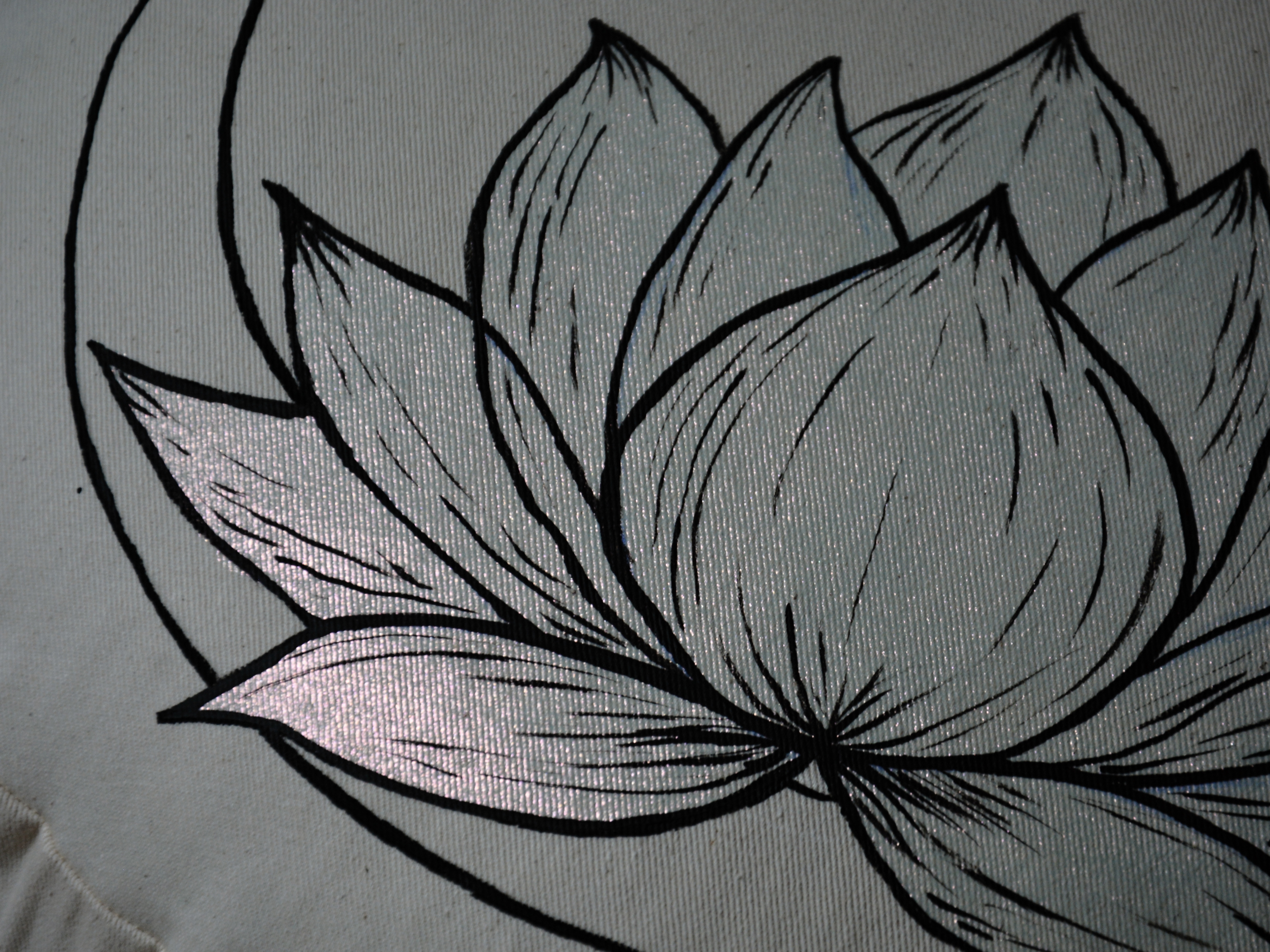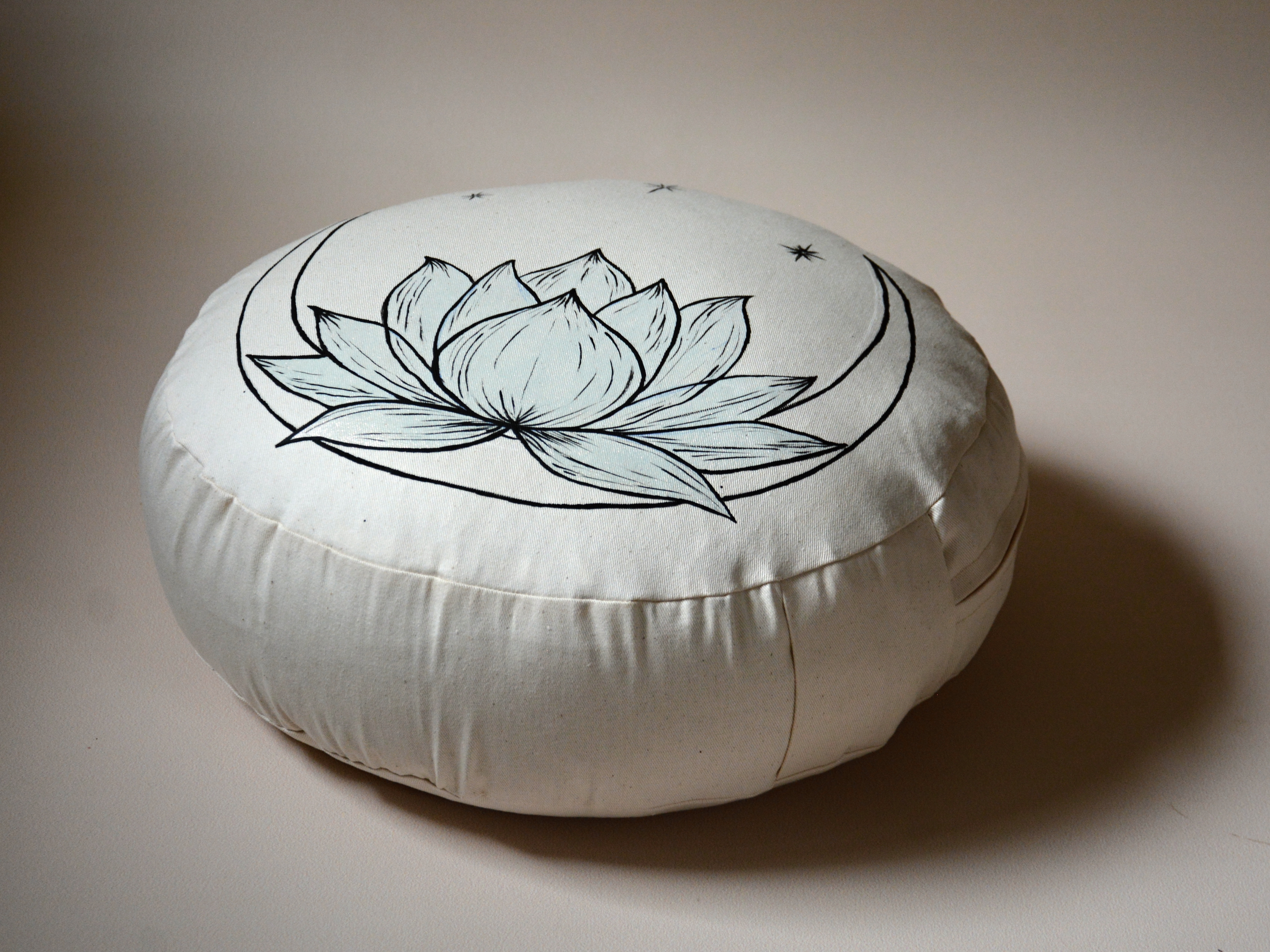 Vnější obal je ušitý z organického bavlněného plátna v keprové vazbě a se zapínáním na zip. Vnitřní obal je z bavlněného plátna, se zapínáním také na zip, aby bylo možné náplň snadno vyměnit. Malba i barvení kvalitními barvami na textil.