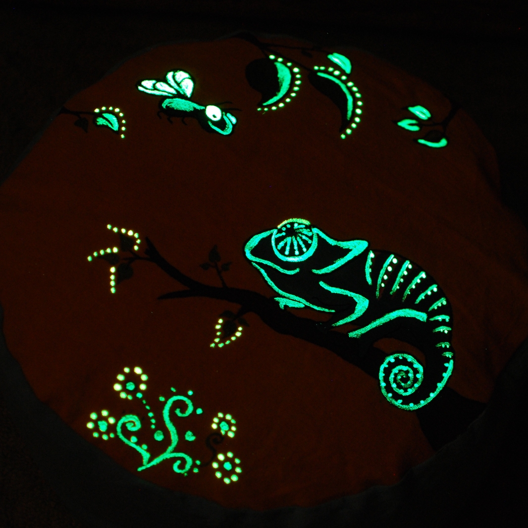 Meditační polštář (sedák) v tyrkysovo-oranžovém provedení, s ruční malbou a s úchytem pro snadnější přenášení! Použila jsem kvalitní barvy na textil a speciální pigment, takže motiv svítí ve tmě (glow in the dark)!!