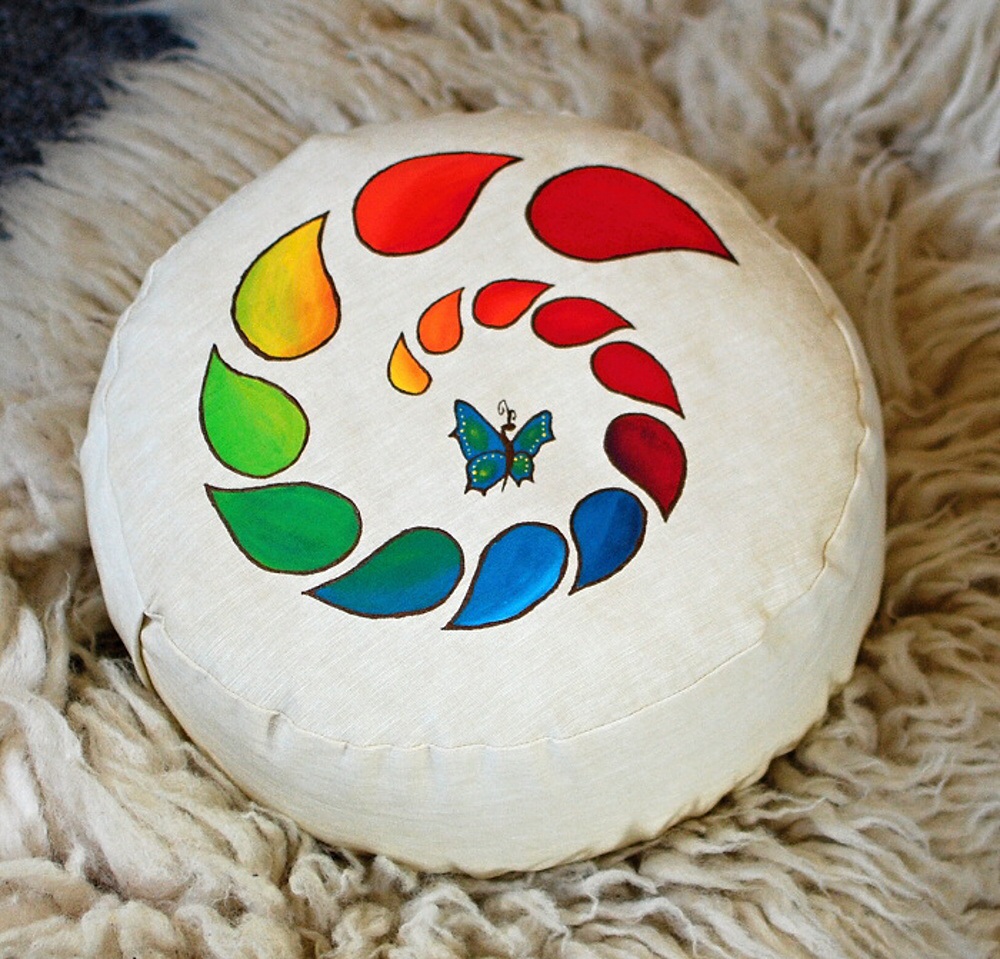 Meditační polštář (sedák) v krémovém provedení s malbou a úchytem pro snadnější přenášení!