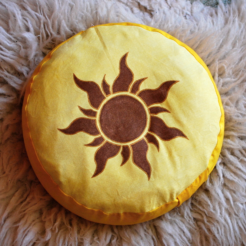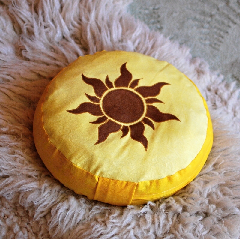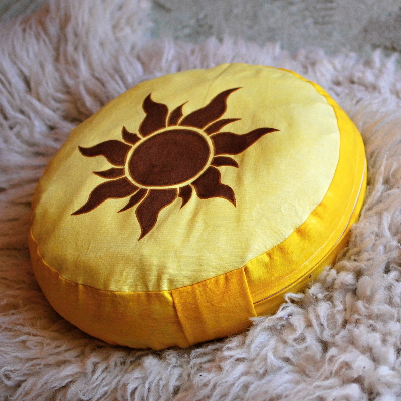 Meditační polštář (sedák) ve žlutém provedení s malbou a s úchytem pro snadnější přenášení!