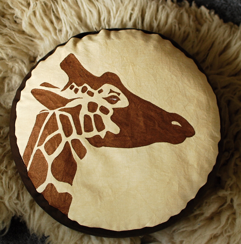 Meditační polštář (sedák) v hnědo - krémovém provedení s motivem žirafí hlavy.