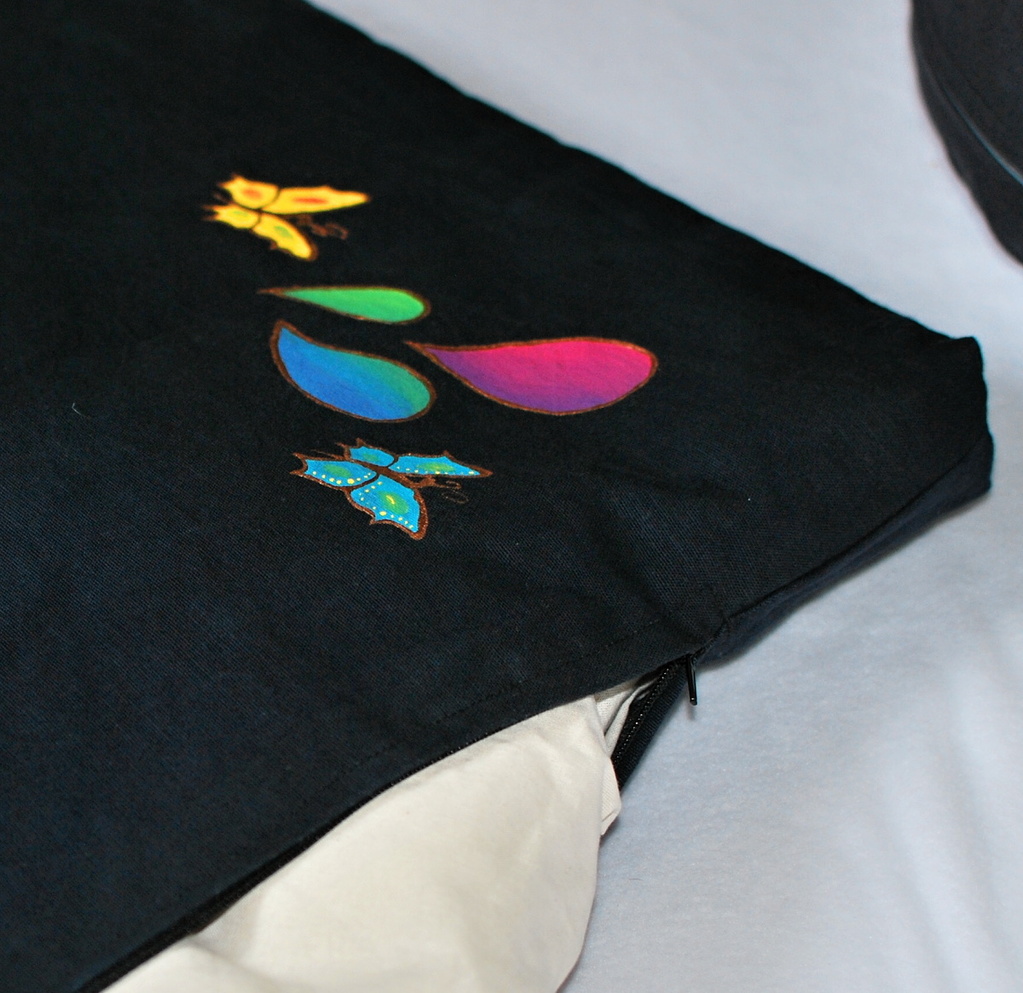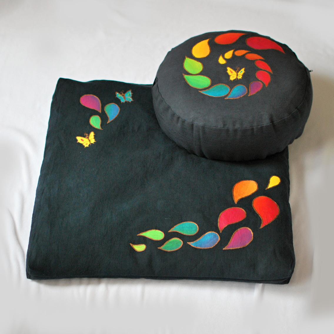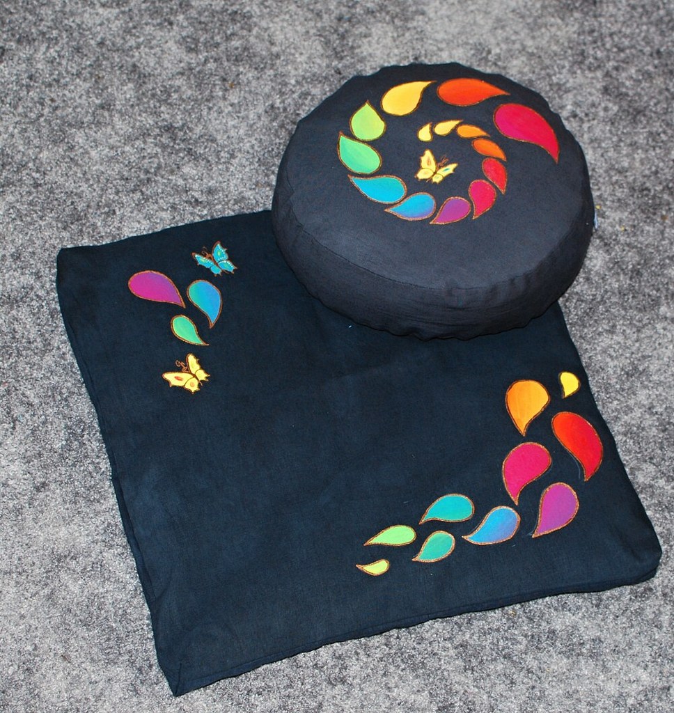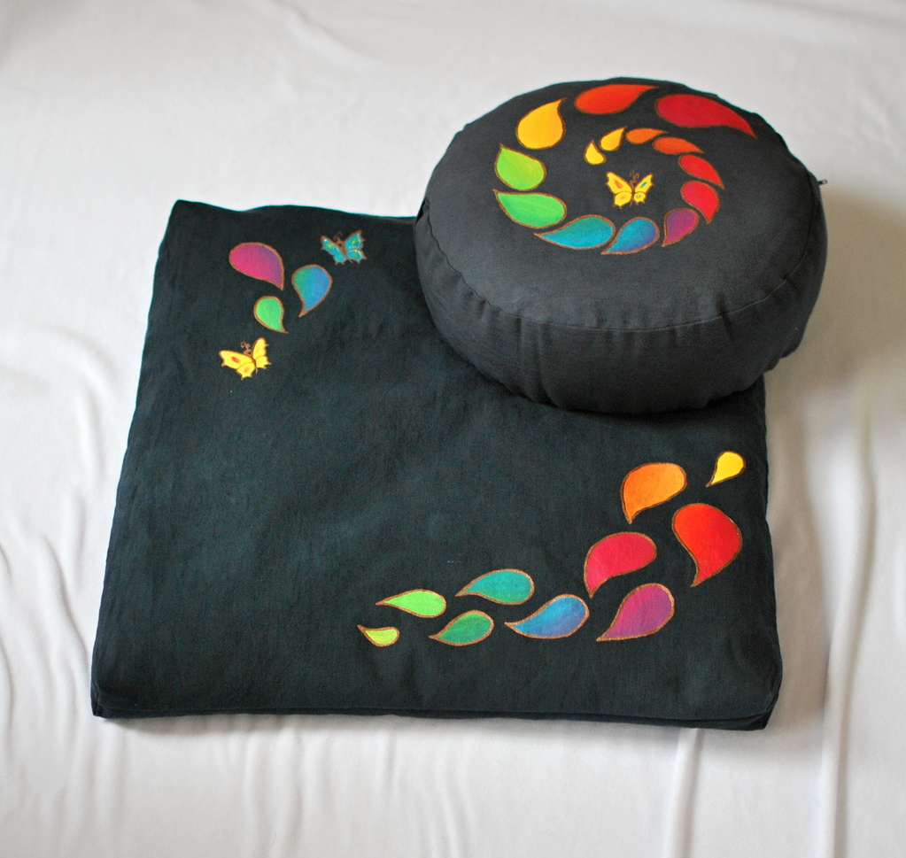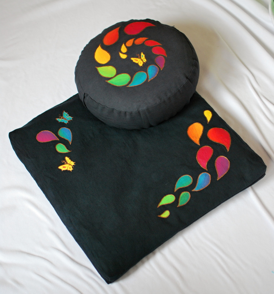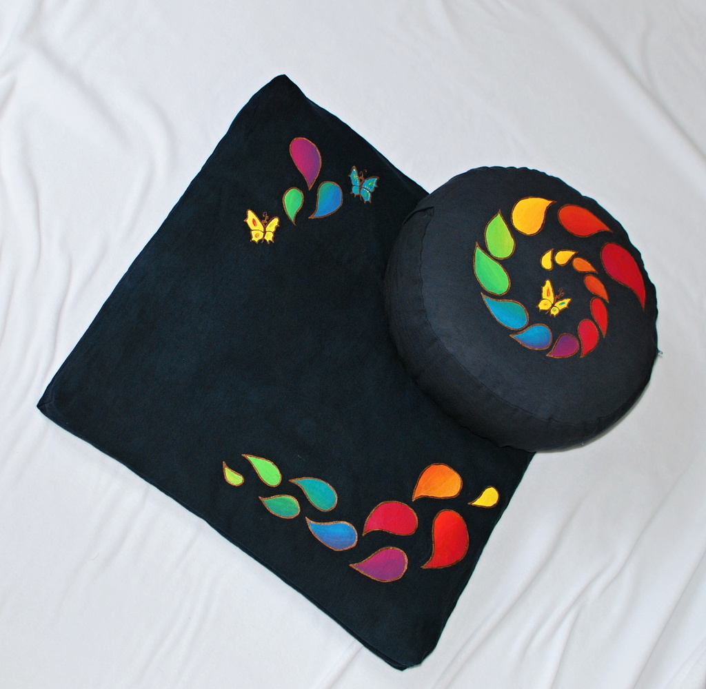Sada meditačního polštářku a vlněné podložky :) Včerném provedení s malbou.