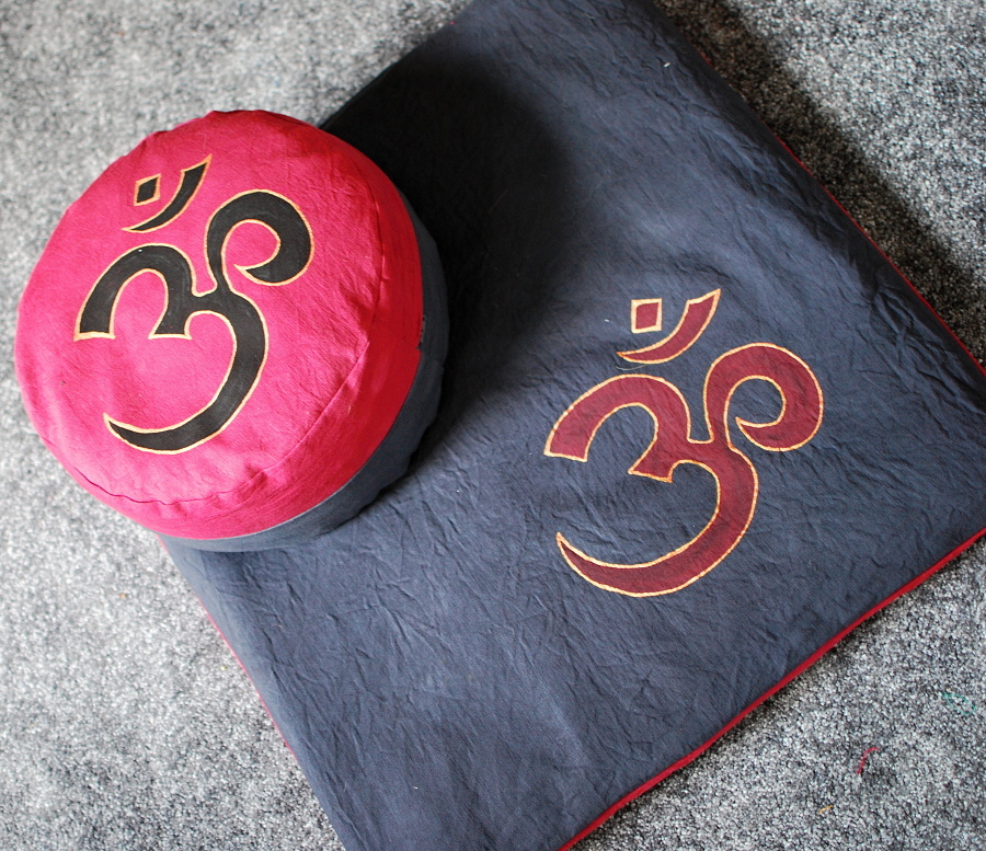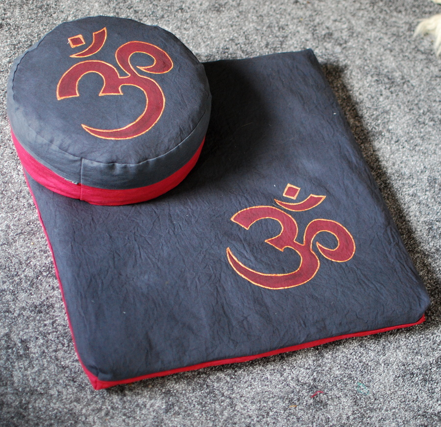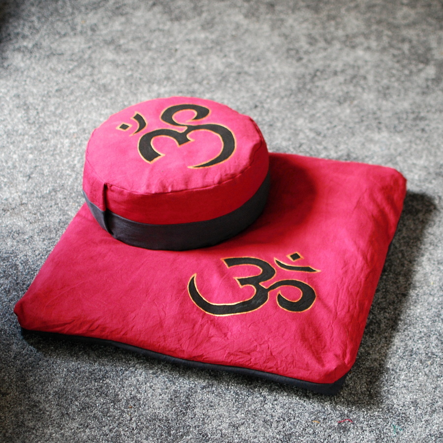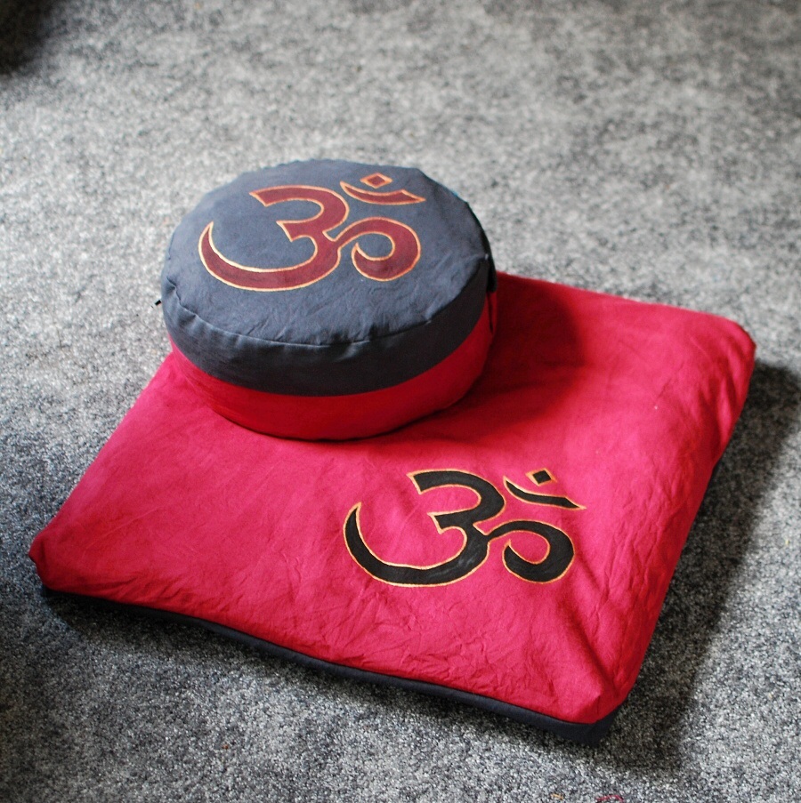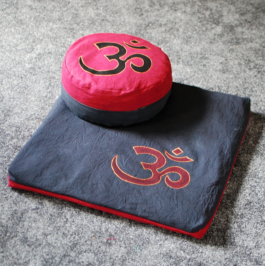 Sada meditačního polštářku a vlněné izolační podložky :) V černo-vínovém provedení s malbou na obou stranách.