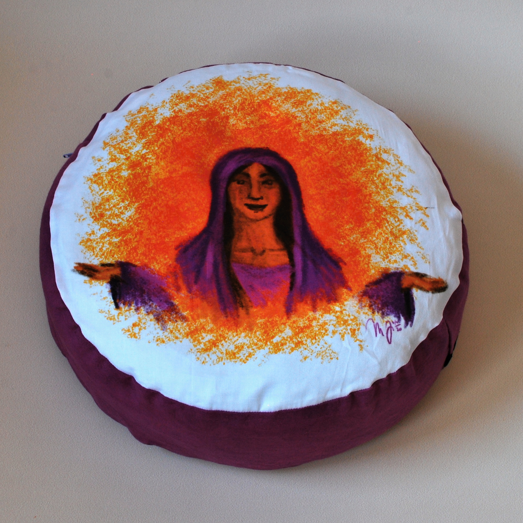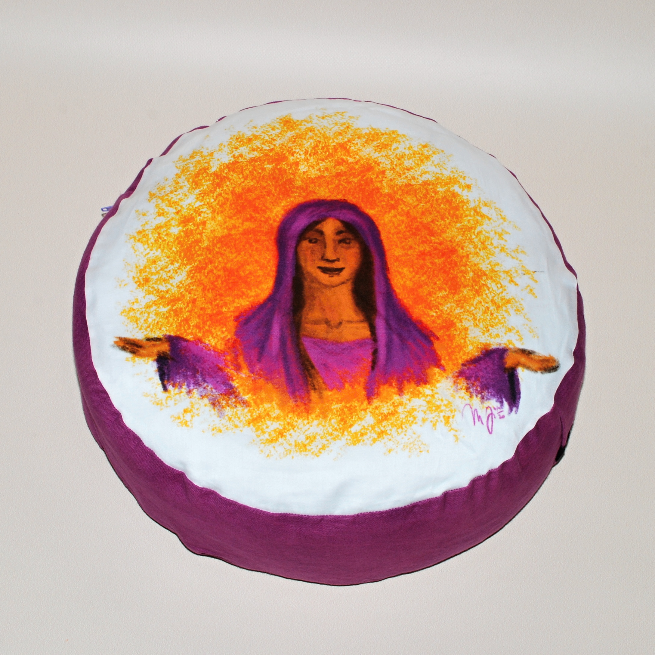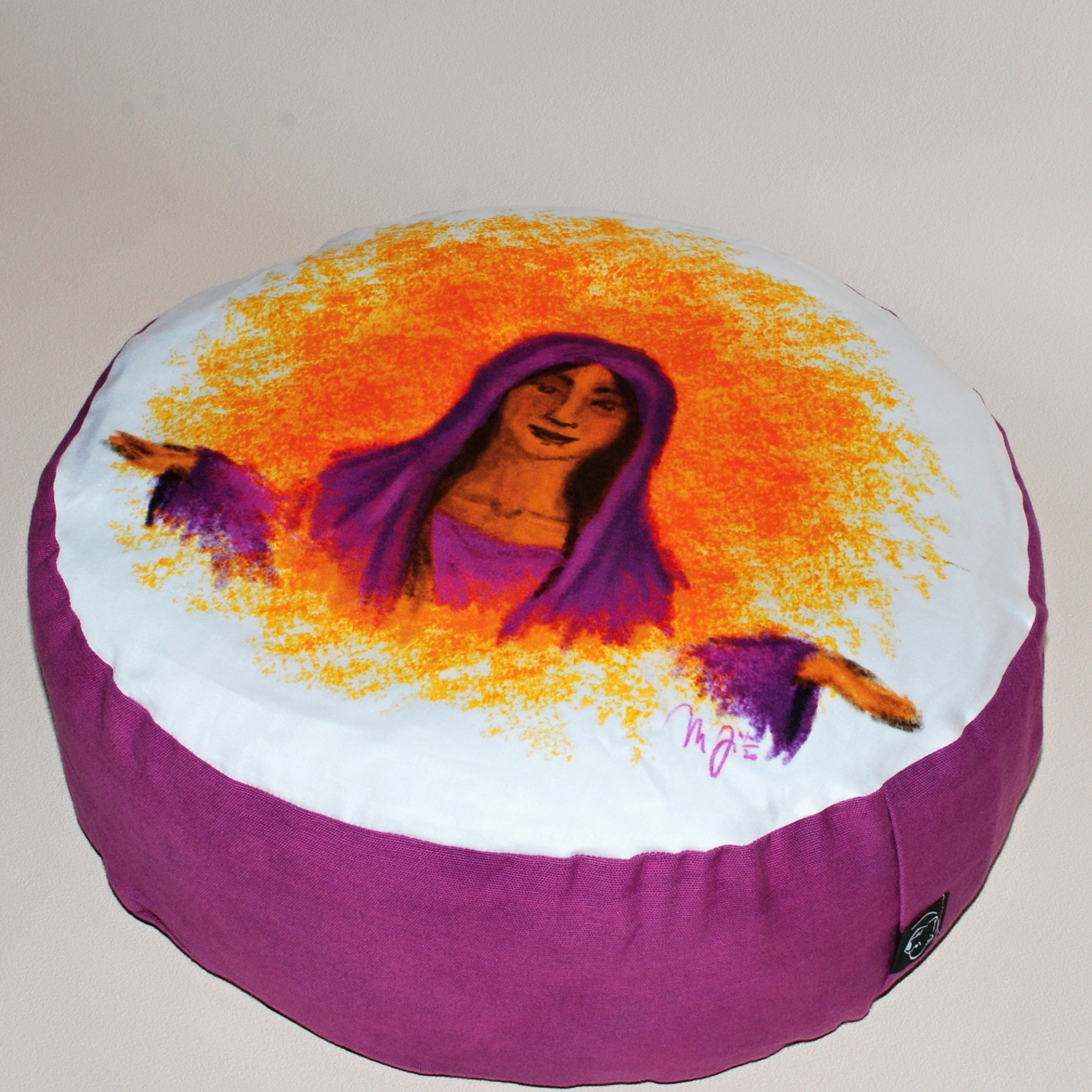Meditační polštář ve fialovém provedení . Fialová (boky+spodní část) je 100% bavlna v pevné keprové vazbě, vrchní díl je pevné plátno s kvalitním potiskem. Motiv je od výtvarnice Plyšperk-art (více tvorby můžete zhlédnout zde https://www.instagram.com/Plysperk_Art/)