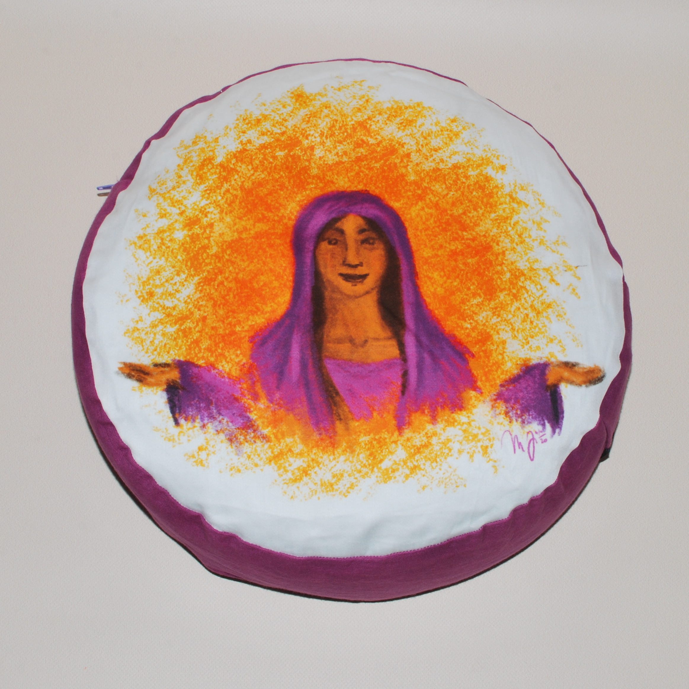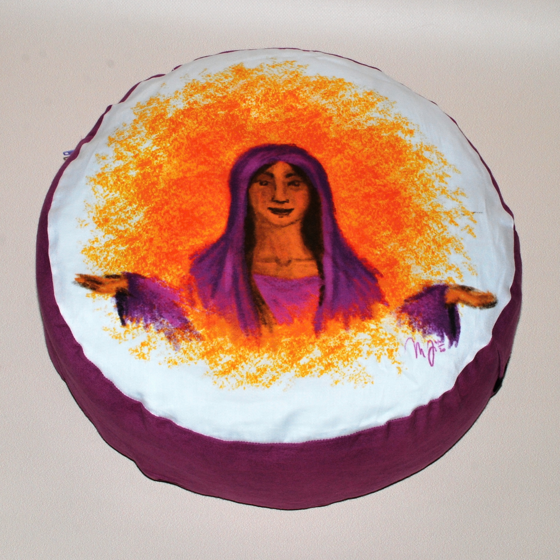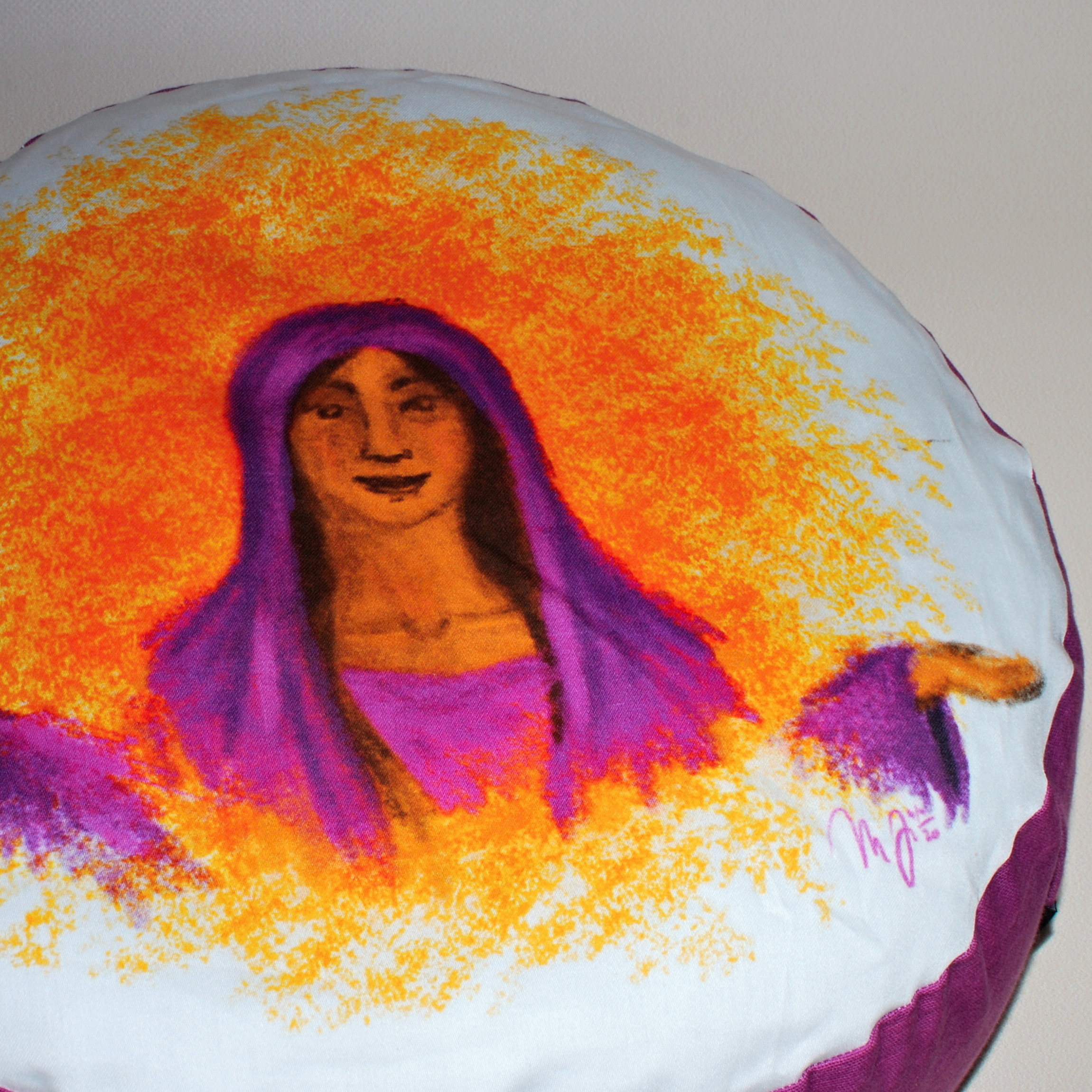 Meditační polštář ve fialovém provedení . Fialová (boky+spodní část) je 100% bavlna v pevné keprové vazbě, vrchní díl je pevné plátno s kvalitním potiskem. Motiv je od výtvarnice Plyšperk-art (více tvorby můžete zhlédnout zde https://www.instagram.com/Plysperk_Art/)