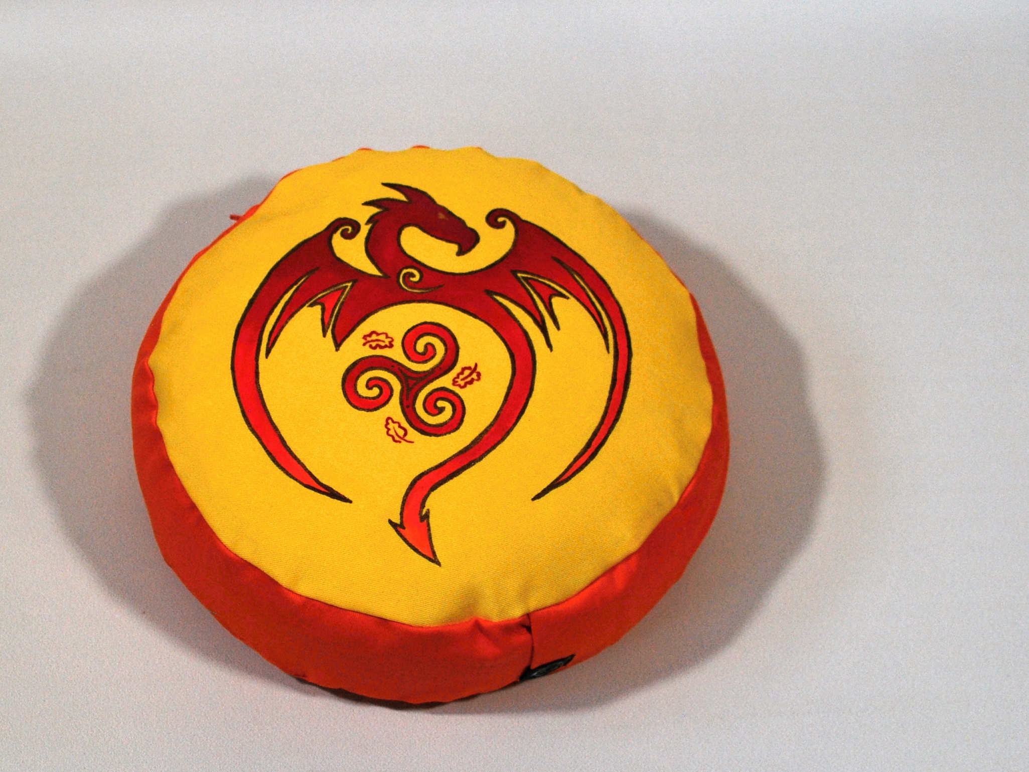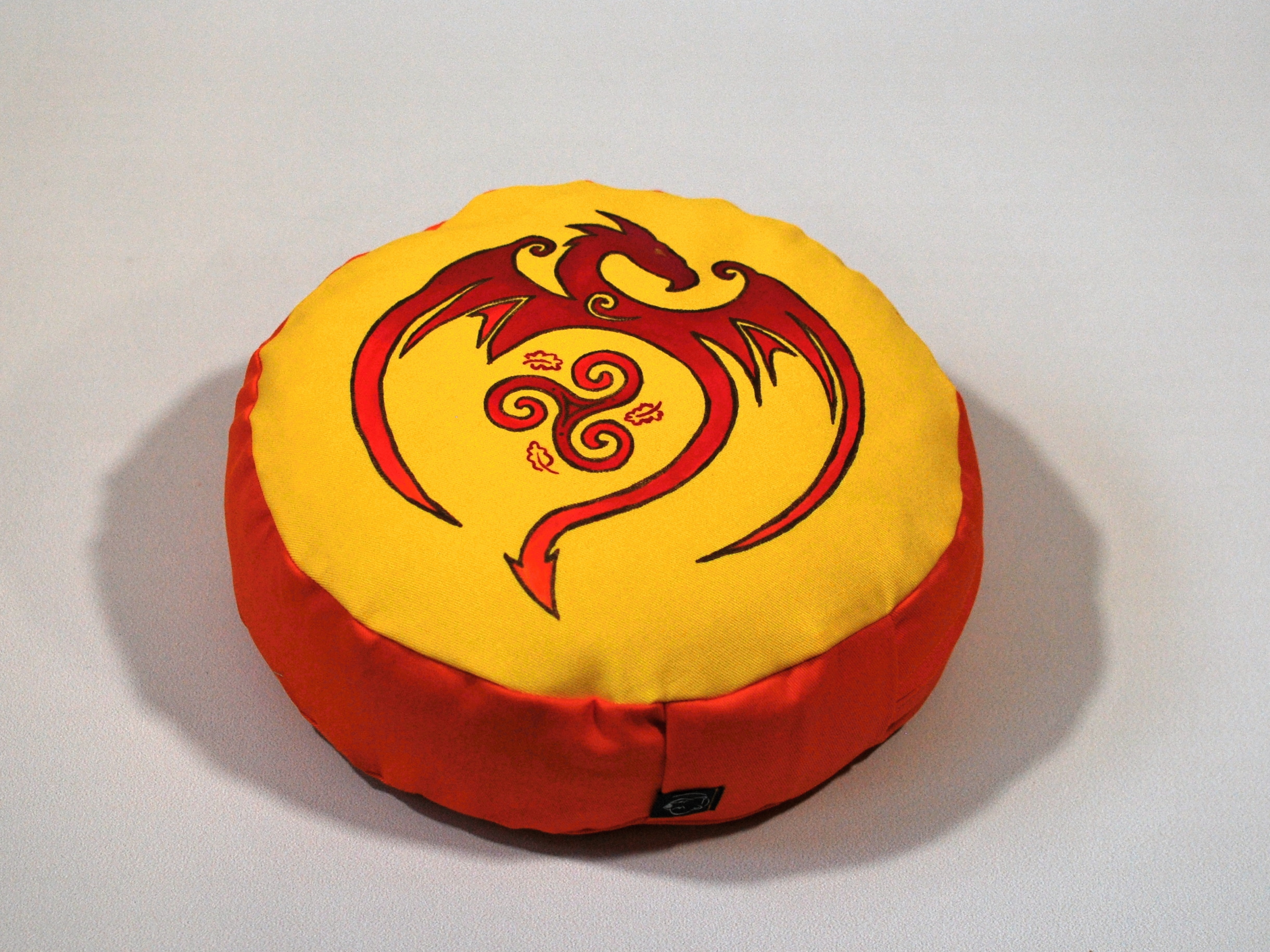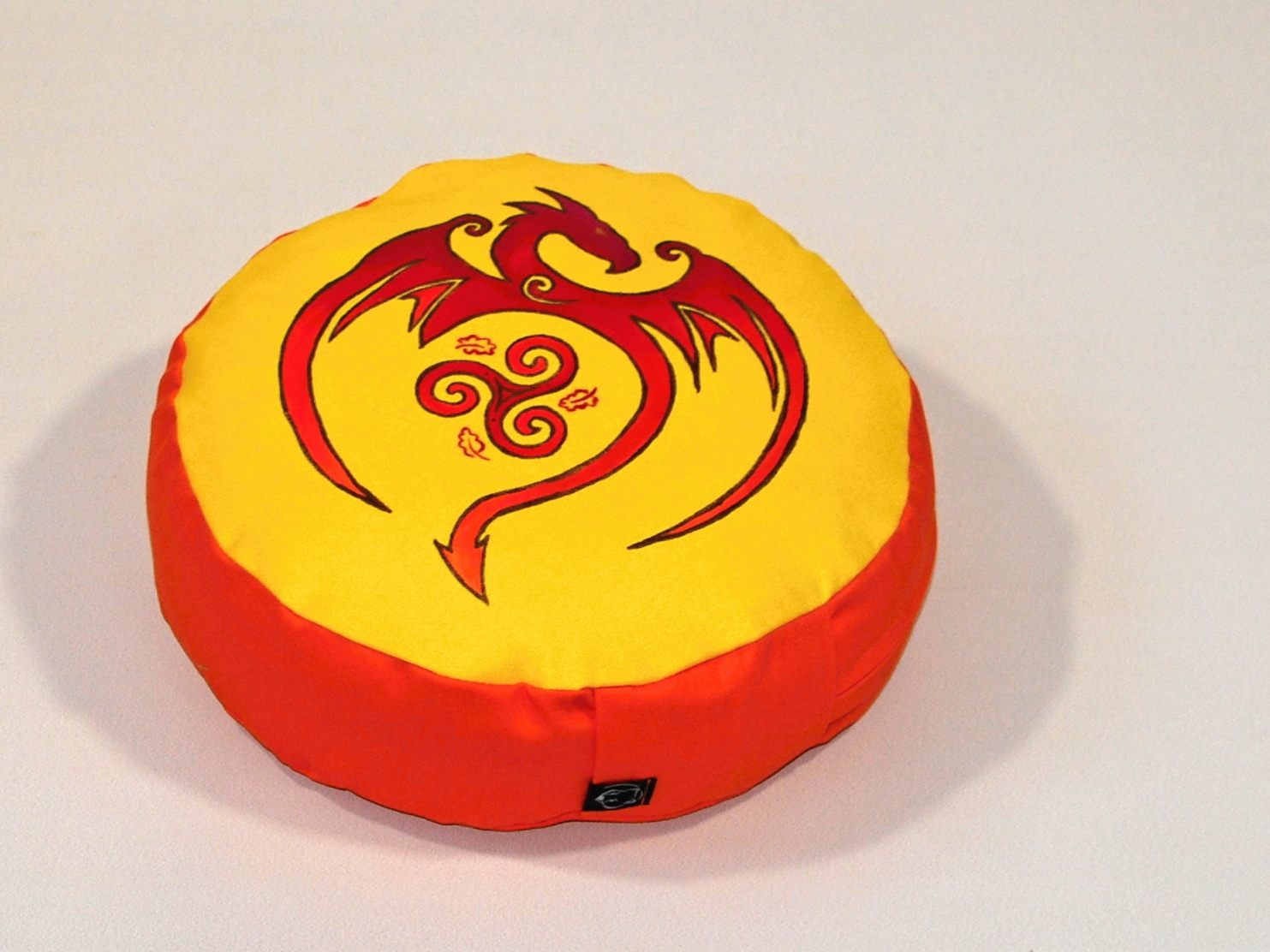 Meditační polštář v oranžovo-žlutém provedení. Malba v odstínech červené a oranžové v reálu jsou barevné přechody plynulejší a živější než na fotografiích... Vnější obal je ušitý z pevného bavlněného plátna se zapínáním na zip. Vnitřní obal je z tenké bavlněné látky, se zapínáním také na zip, aby bylo možné náplň snadno vyměnit. Malba i barvení kvalitními barvami na textil.