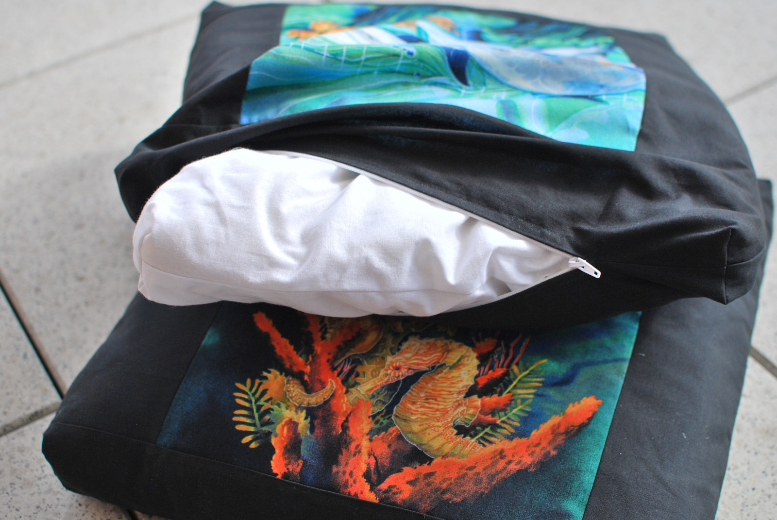 Podsedáky šiji ze 100% bavlny, buď z plátna nebo pevnějšího kepru. Na vrchní části je všitý motiv z designové zahraniční látky. Motivy jsou v limitovaných množstvích a jsou obměňovány.