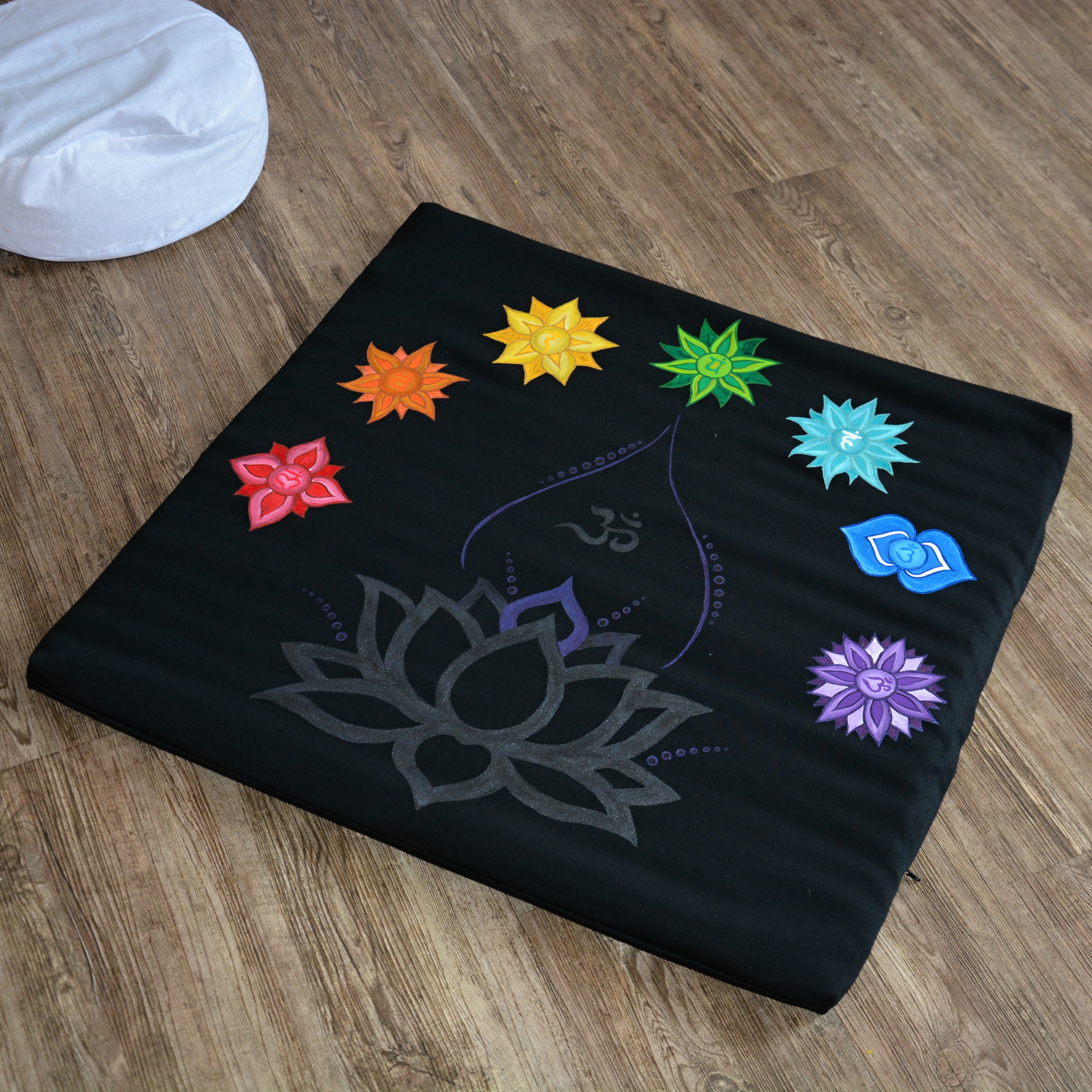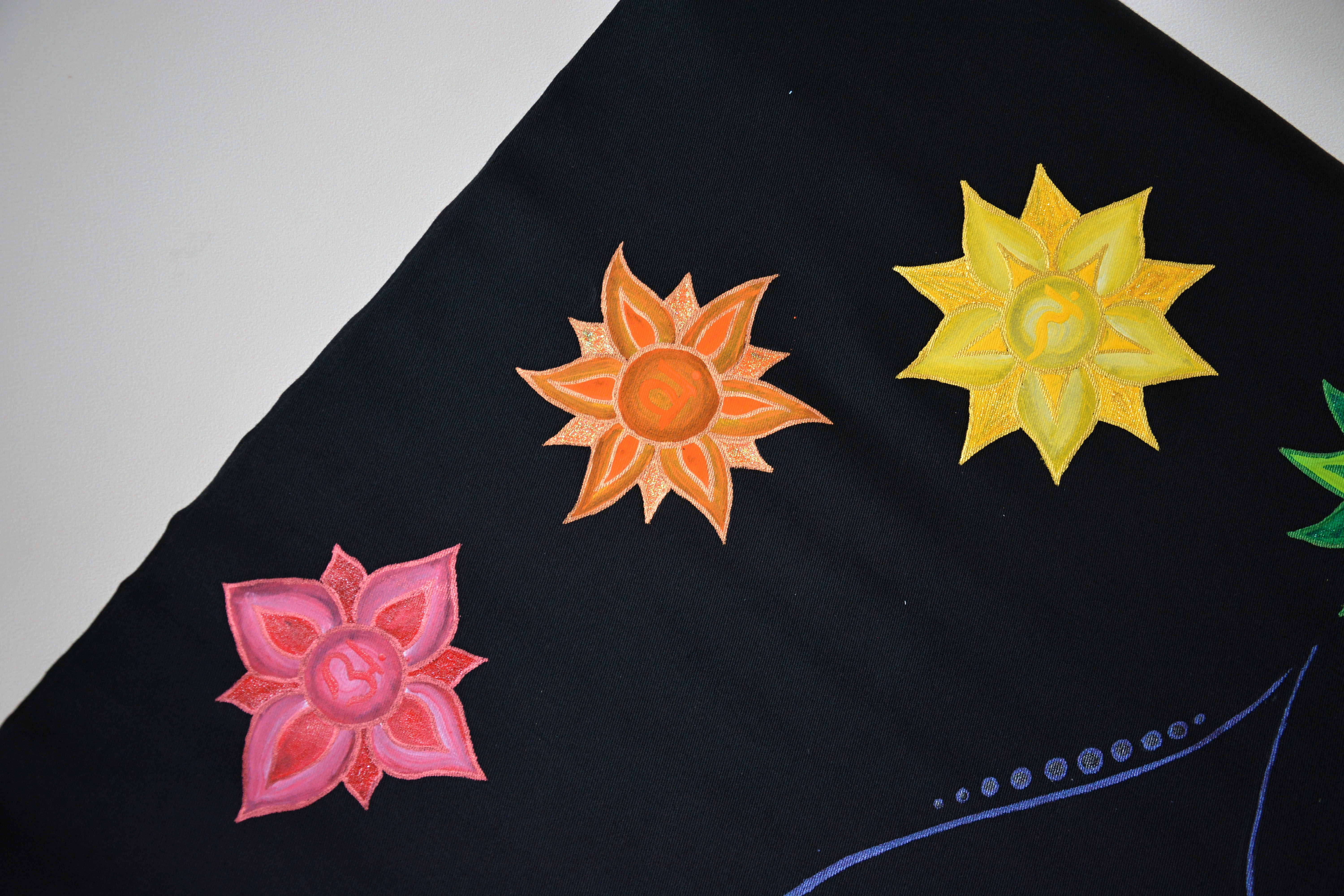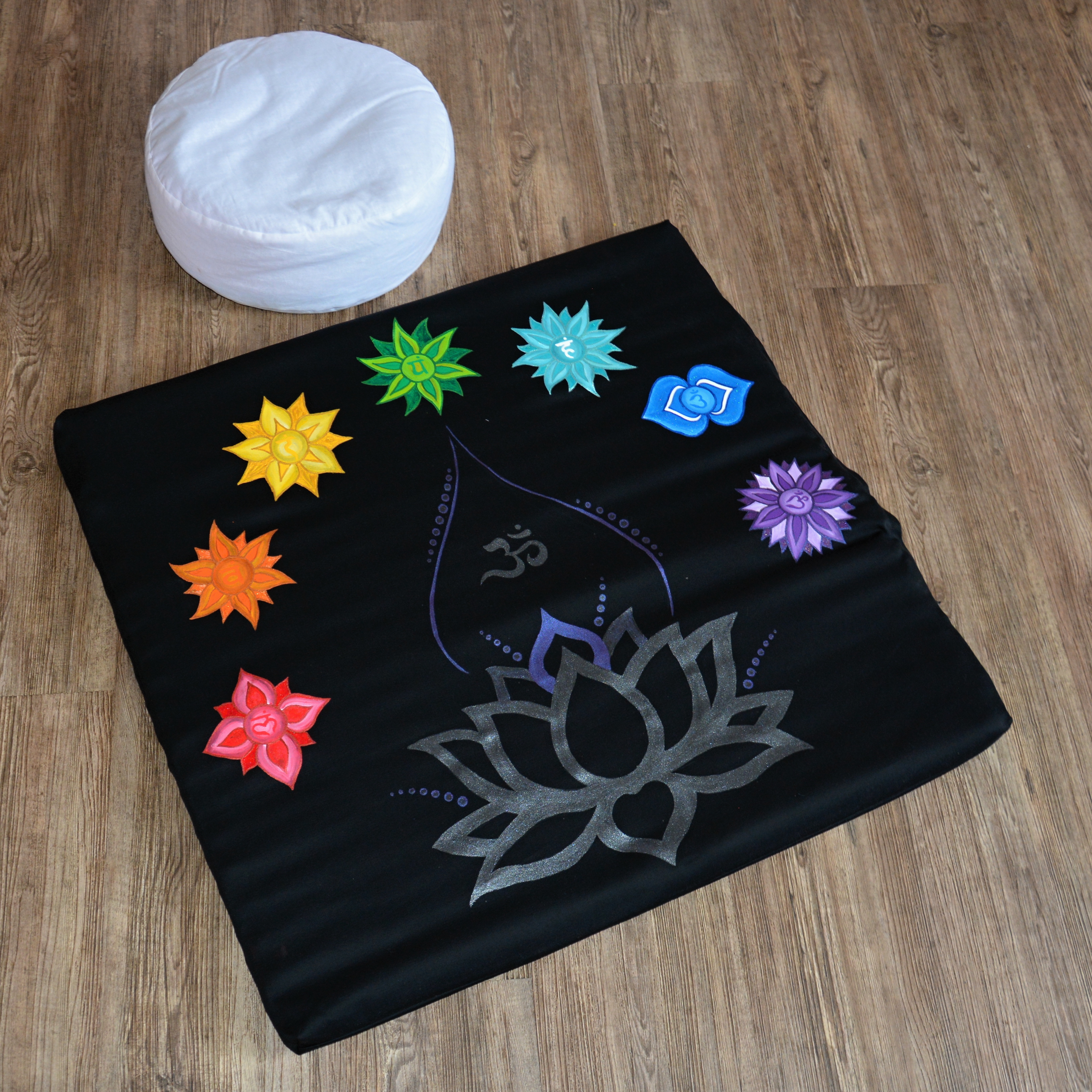 Obal na podložku je ze 100% bavlny v keprové vazbě, barva černá s malbou. Malba kvalitními barvami na textil. Obal lze prát v pračce.