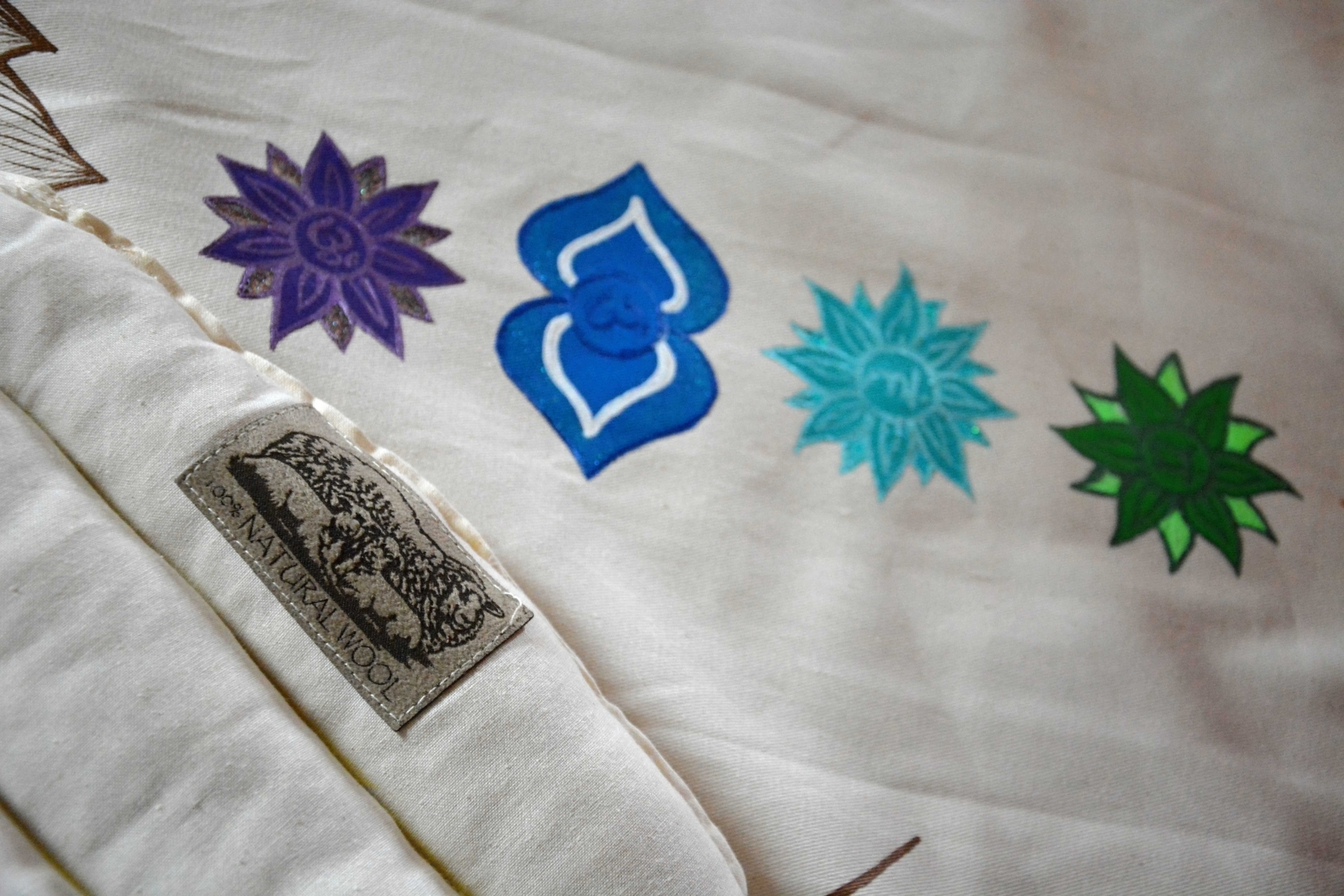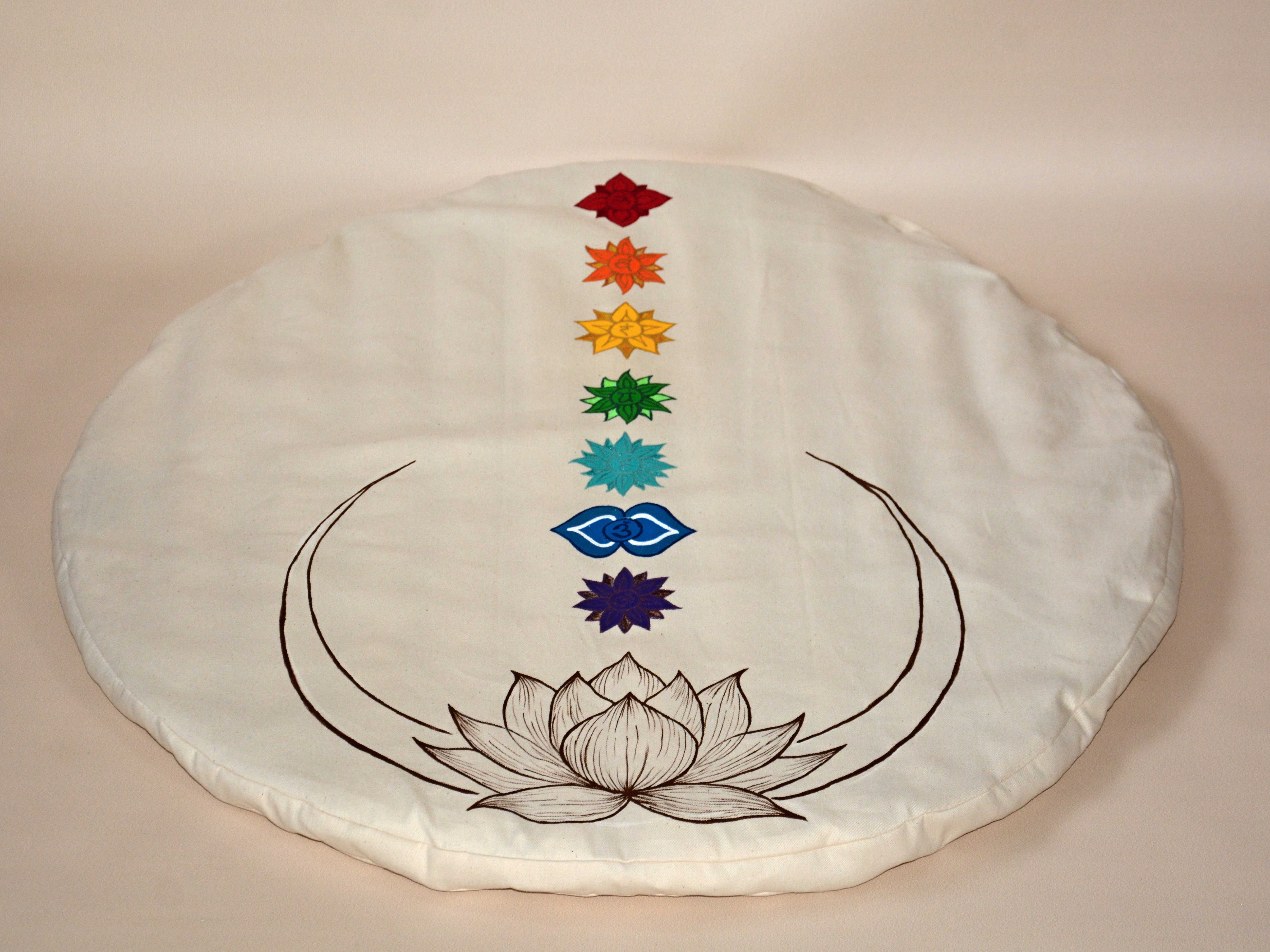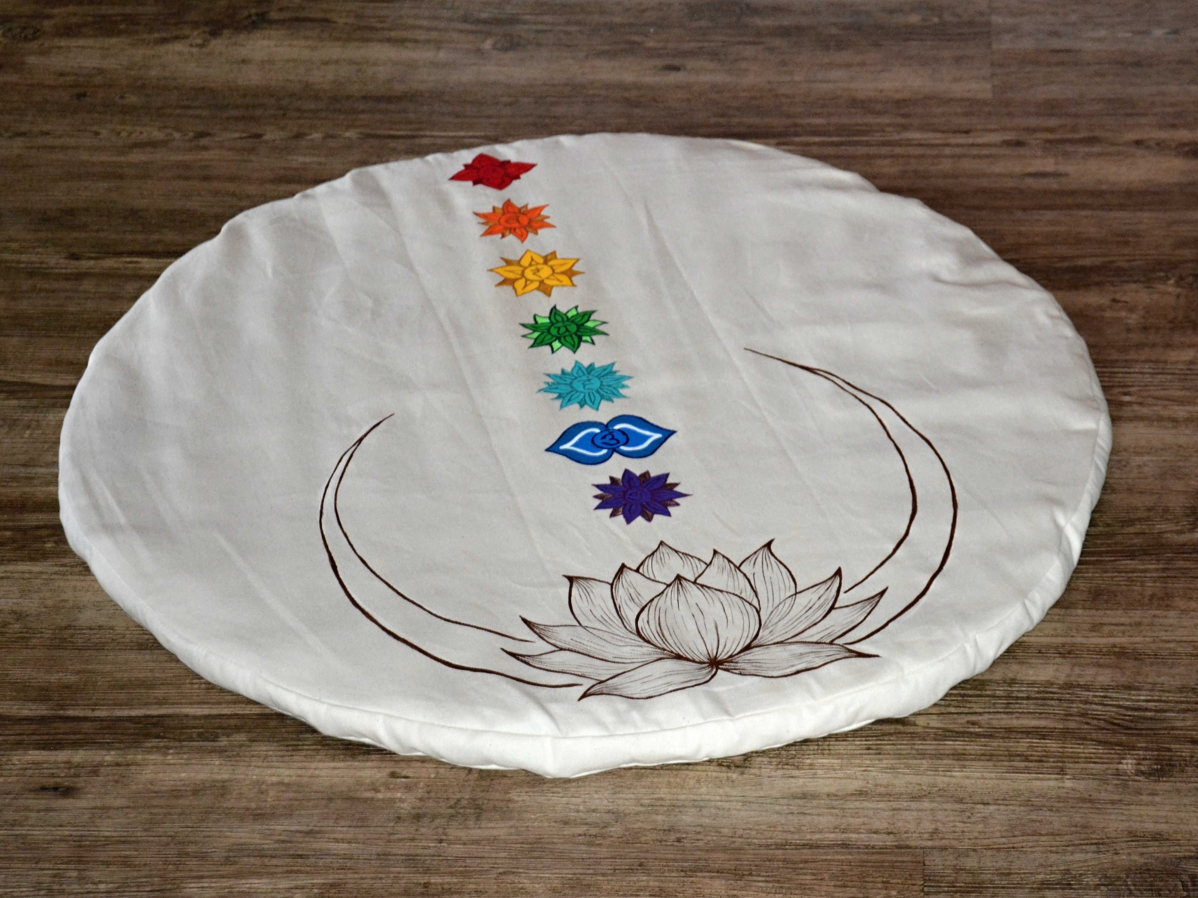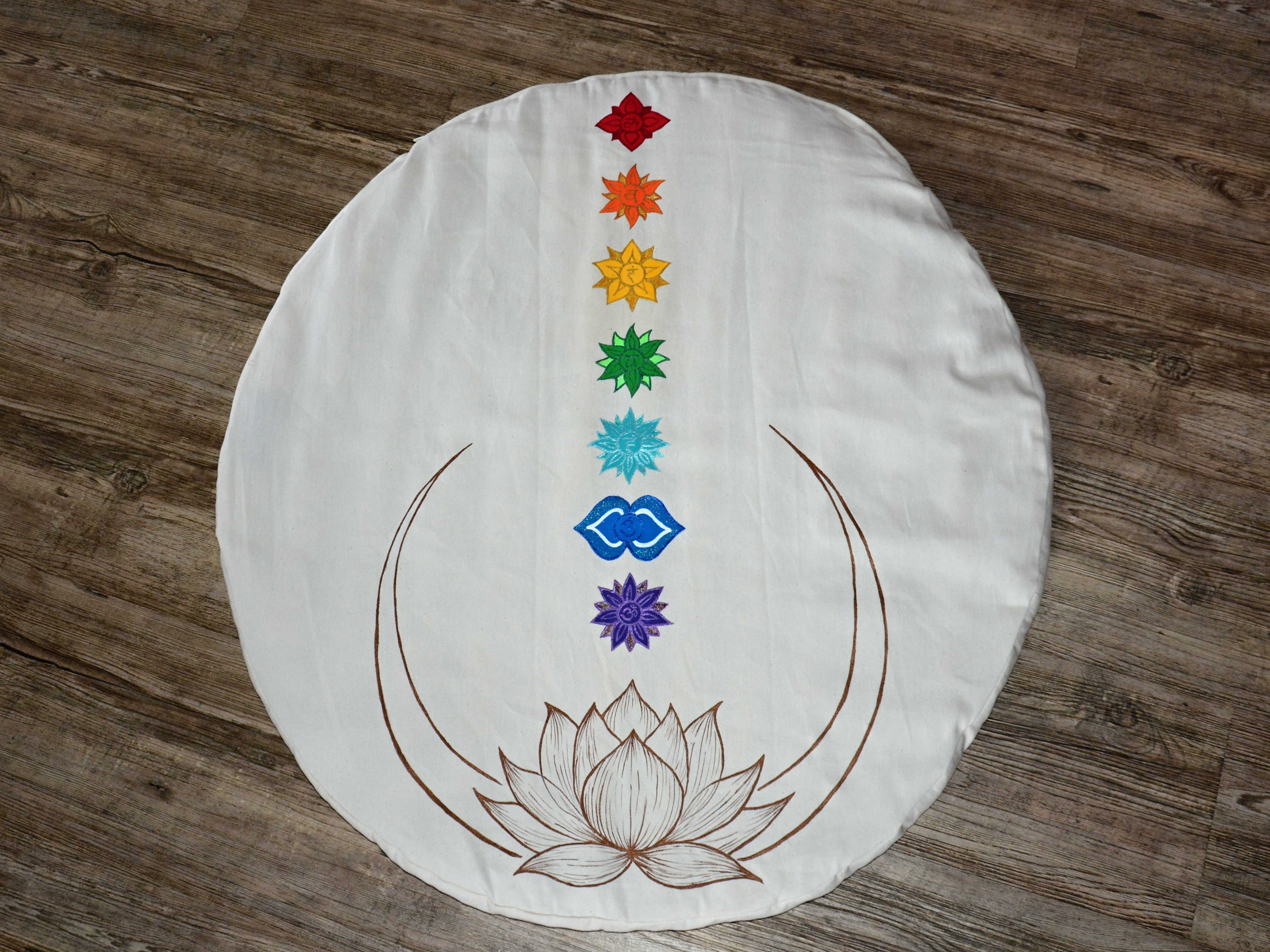 Vlněná meditační podložka s motivem lotosového květu a všech sedmi čaker.