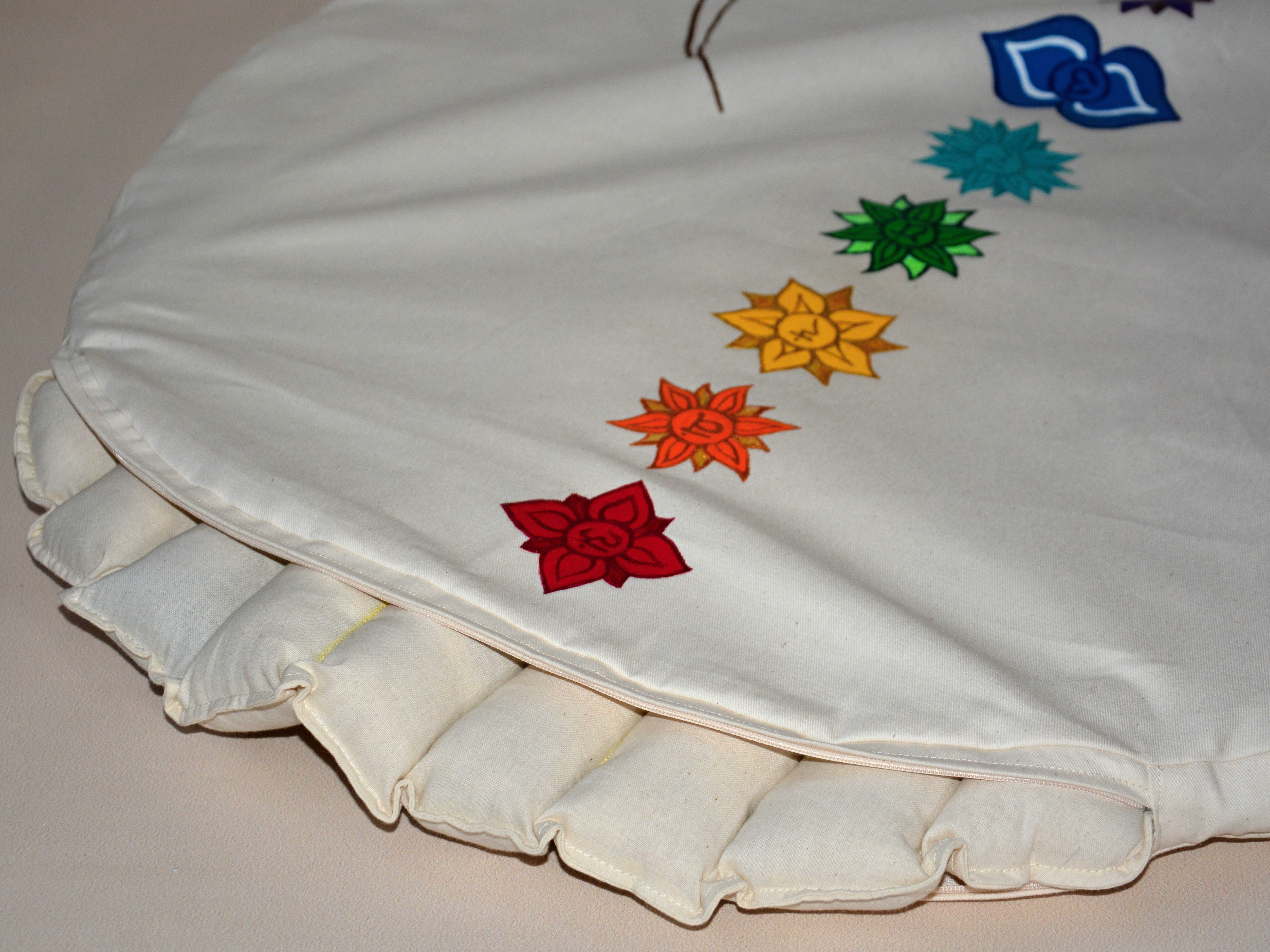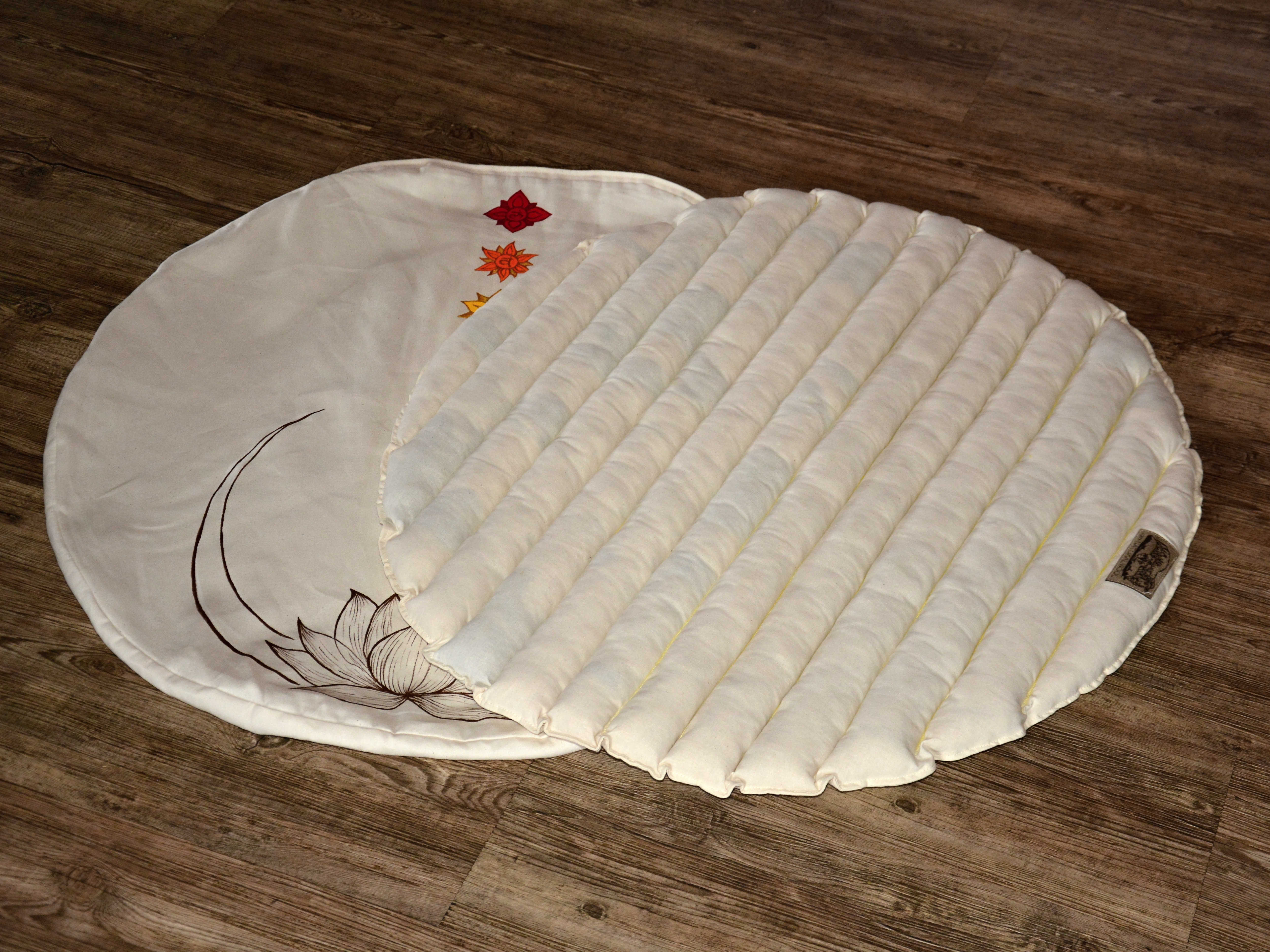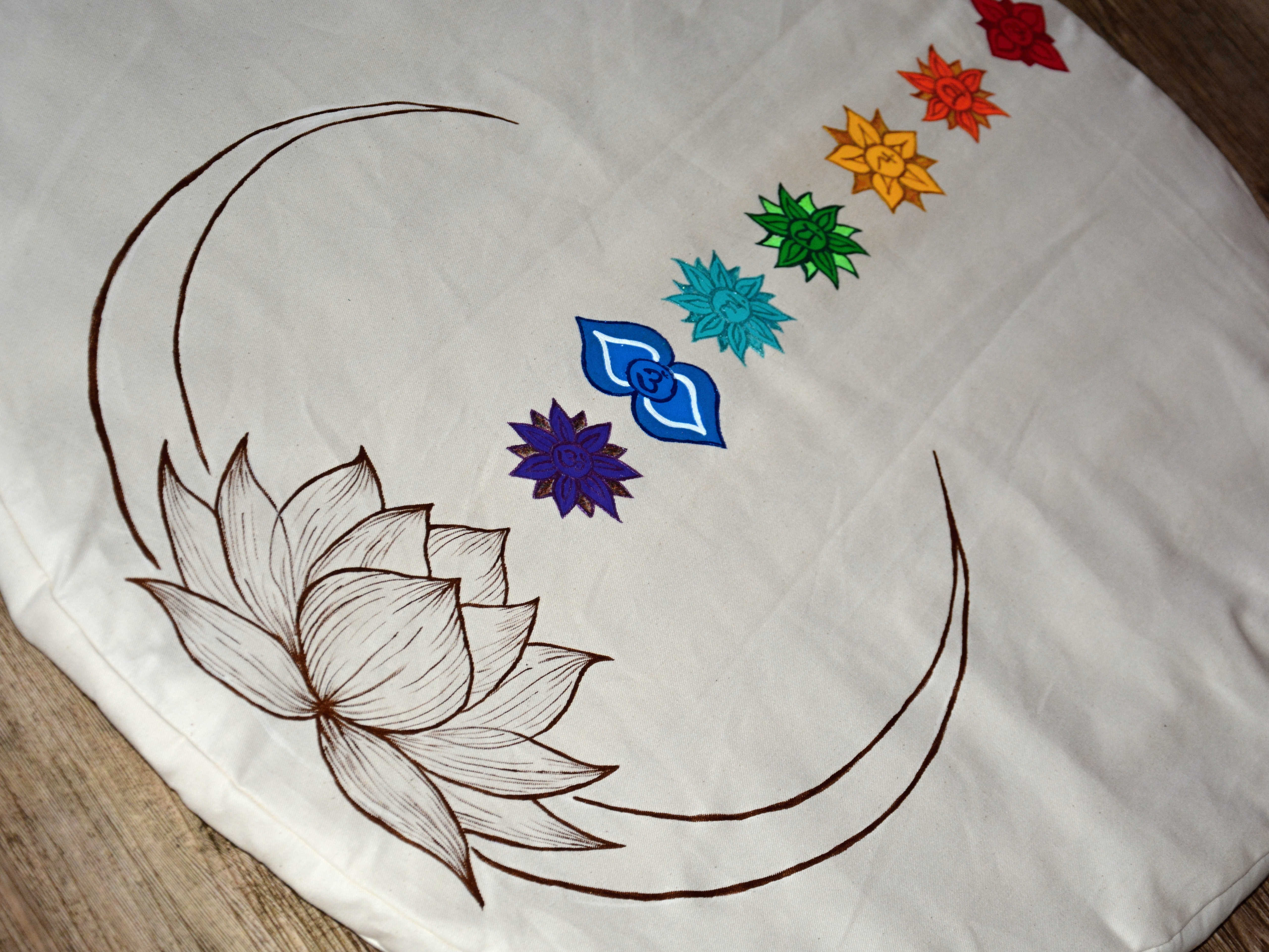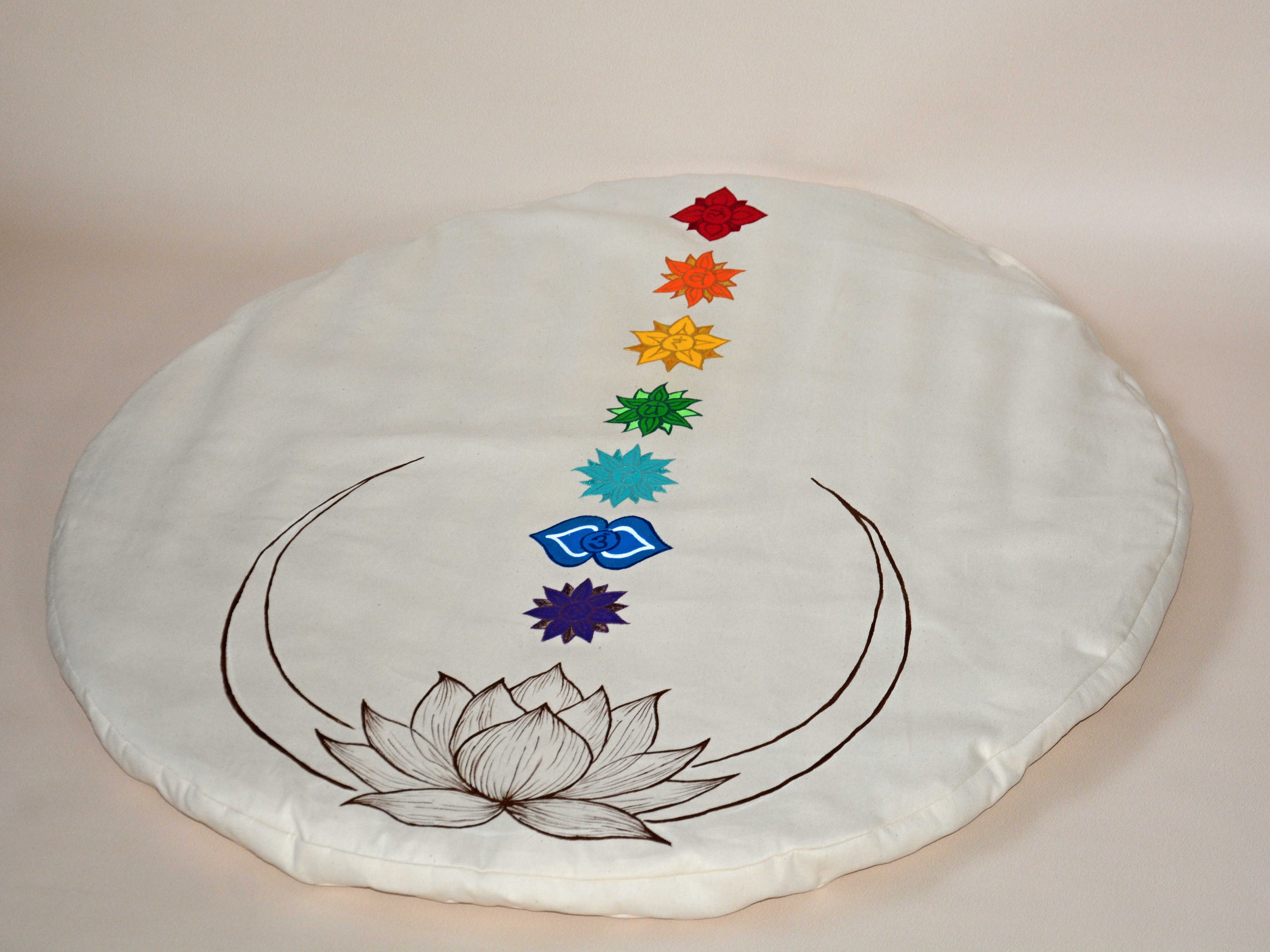 Vlněná meditační podložka s motivem lotosového květu a všech sedmi čaker.