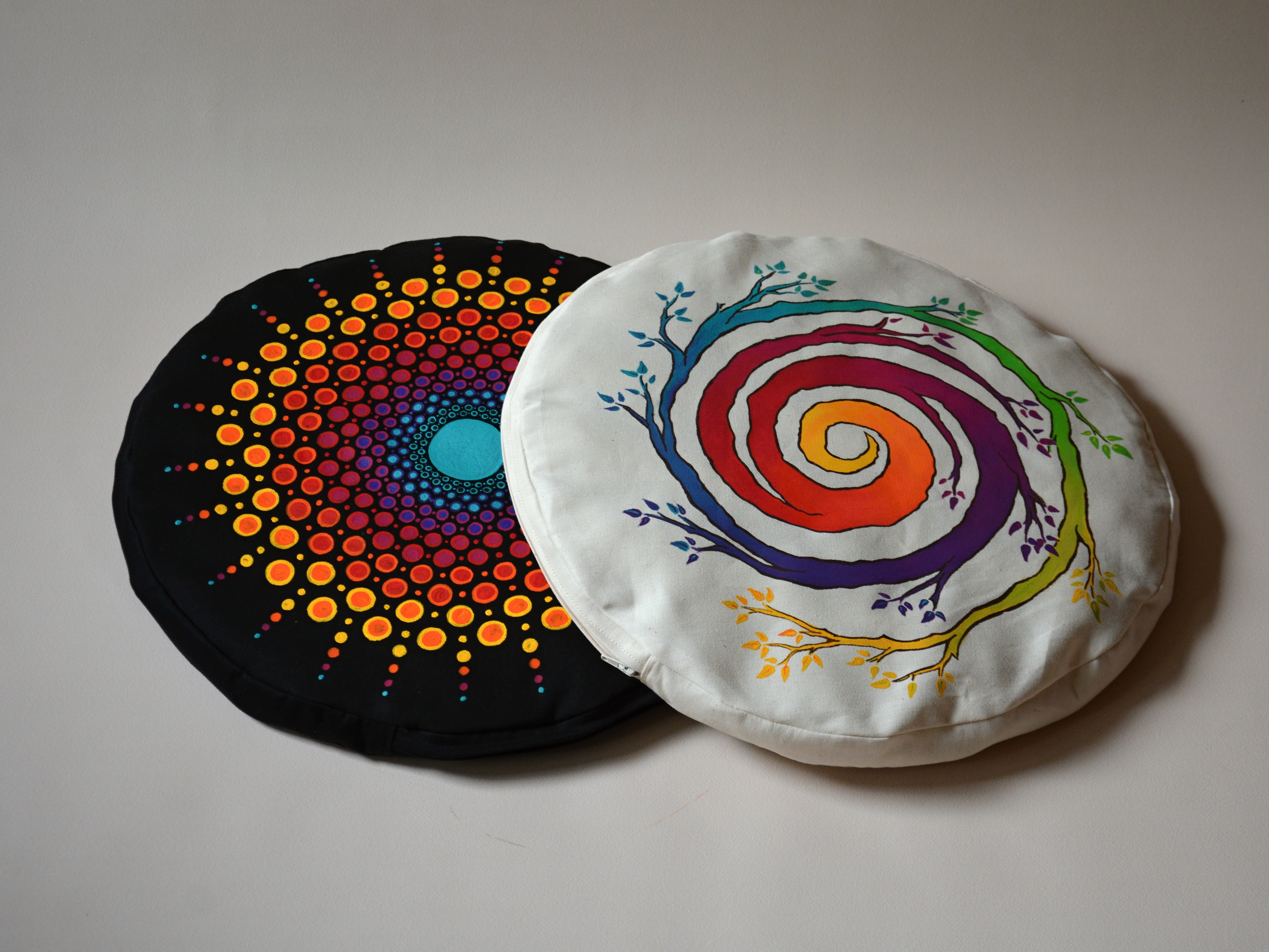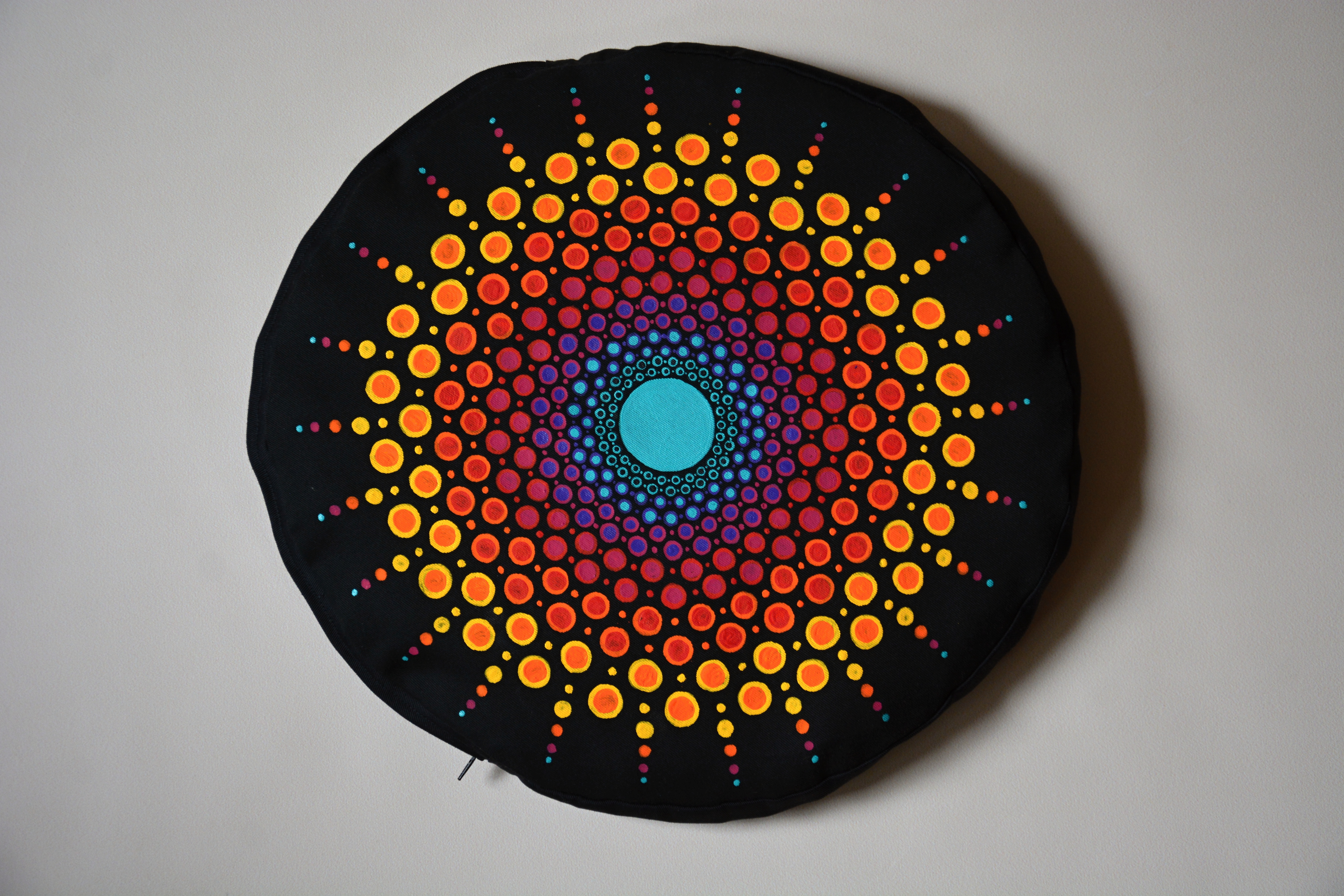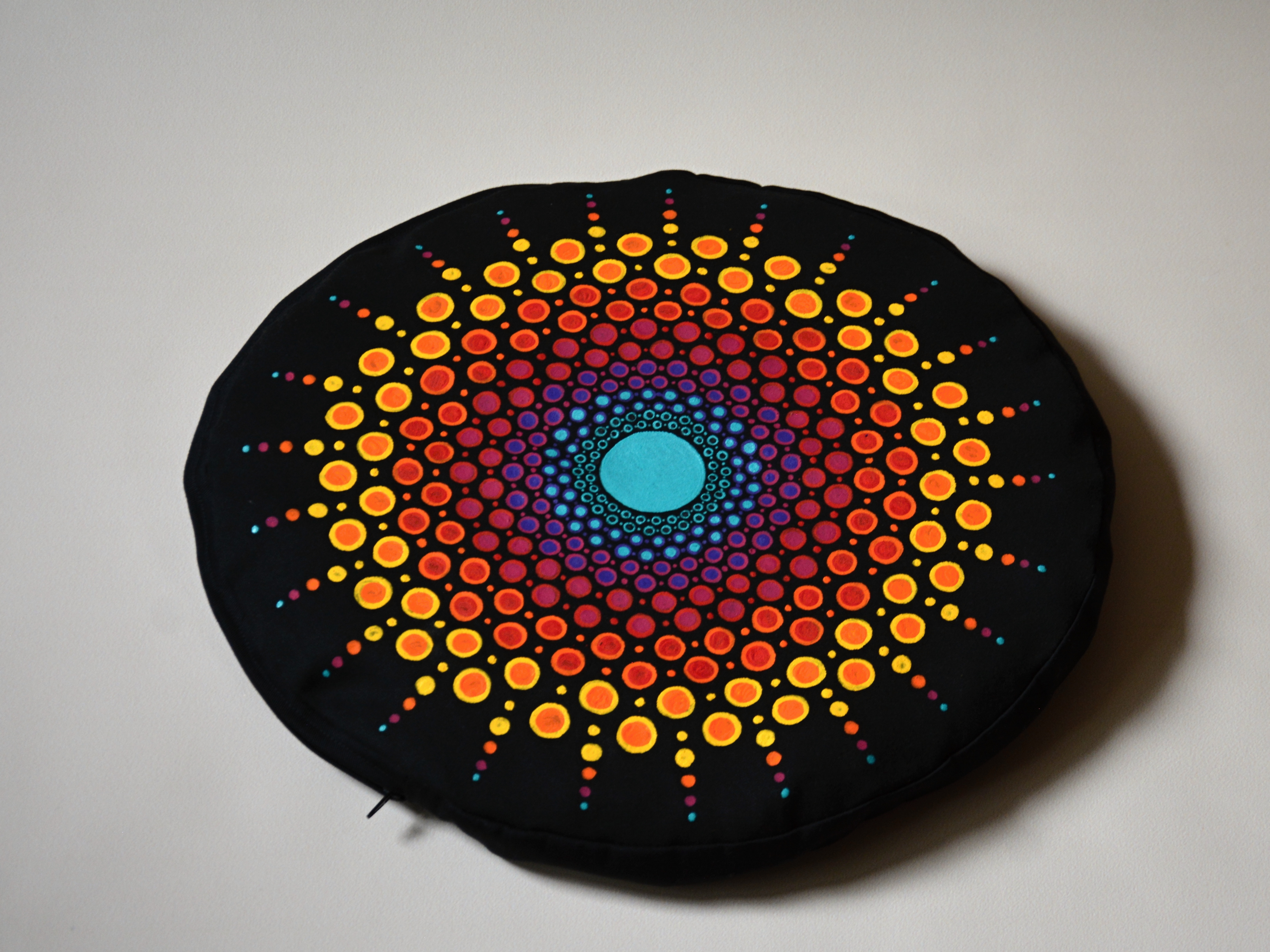 Kulatý podesdák plněný ovčí vlnou, s malbou