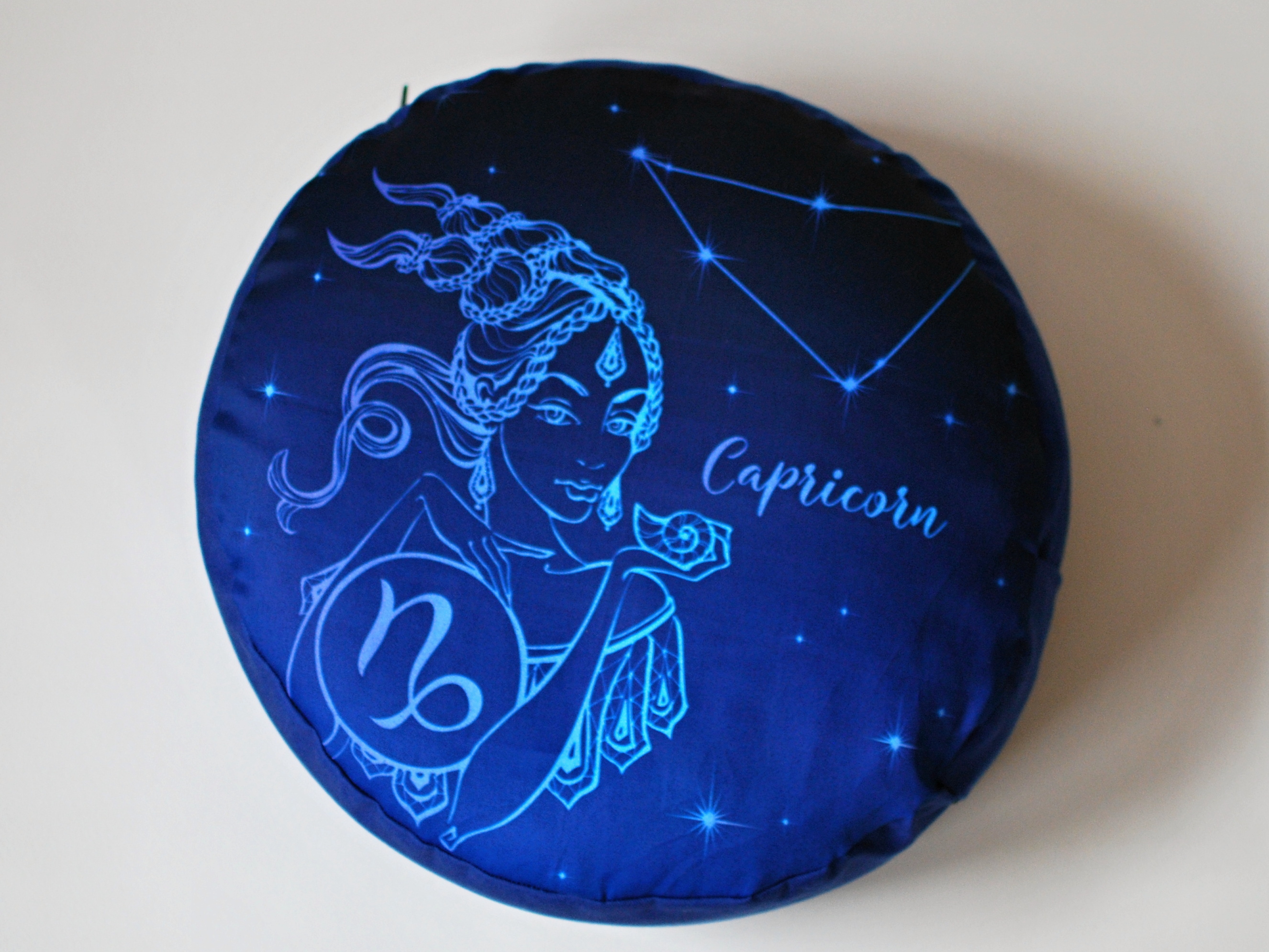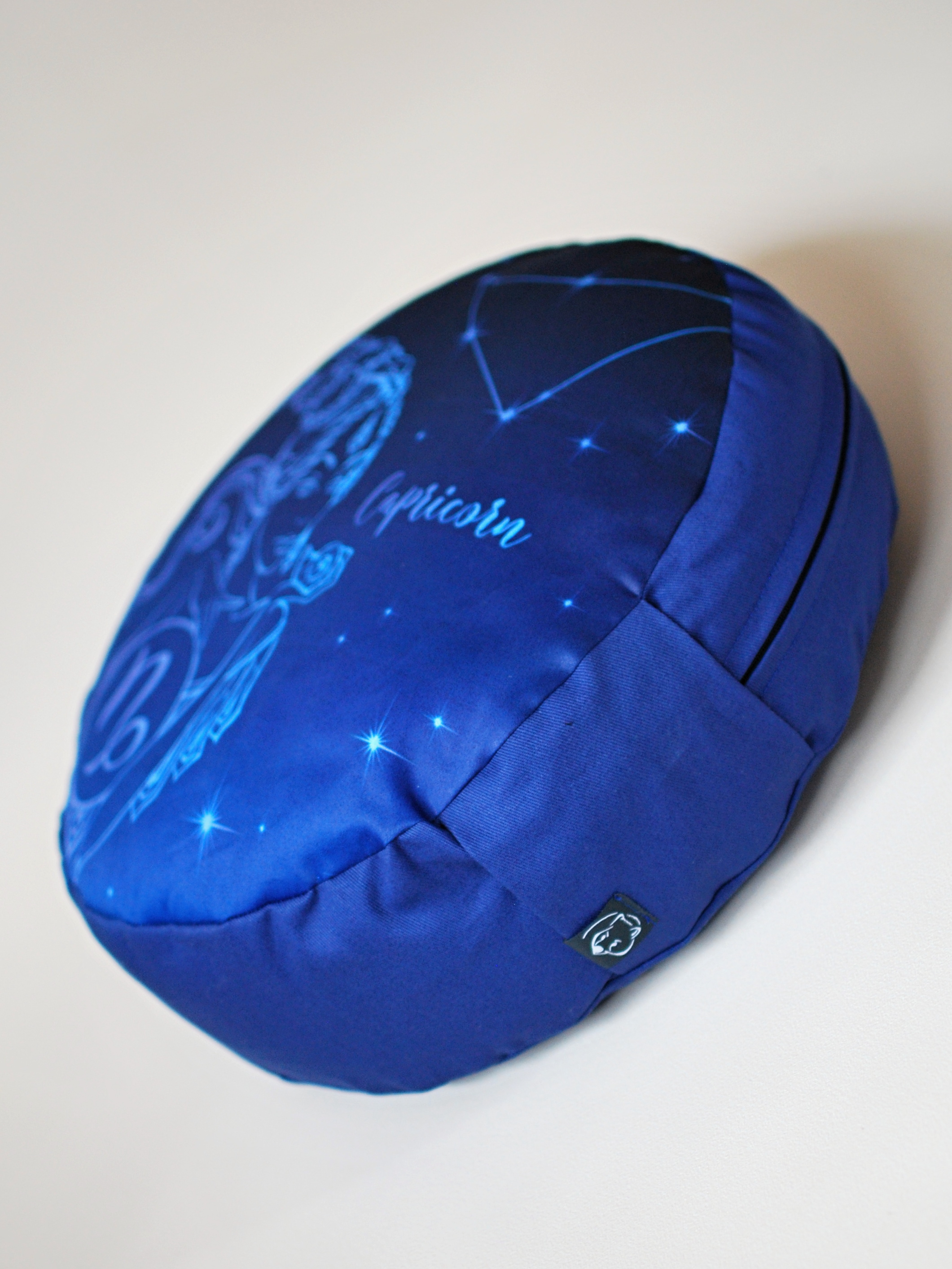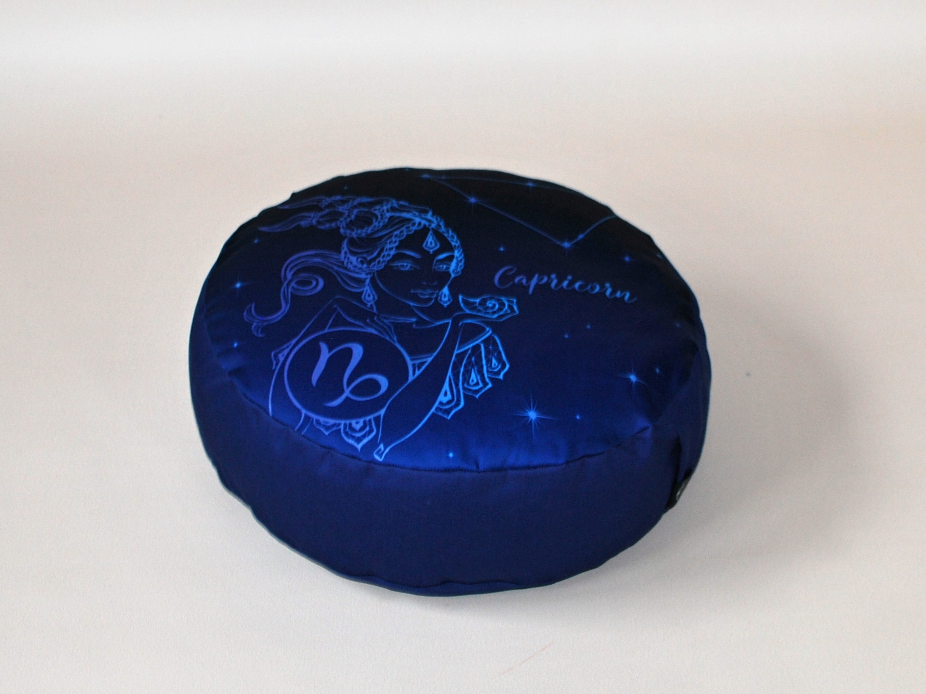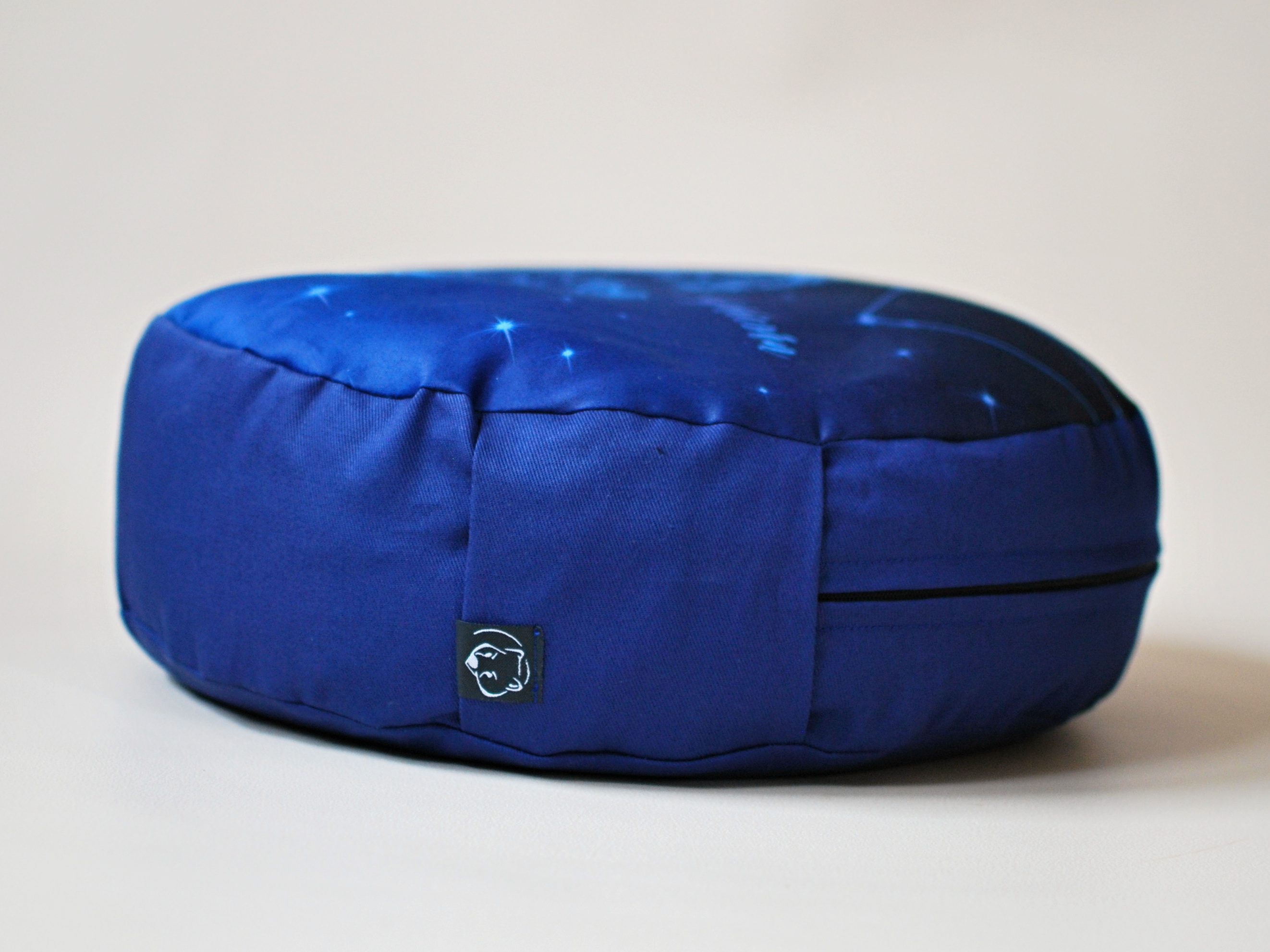 Meditační polštář v tmavě modrém provedení. Boky+spodní část je 100% bavlna v pevné keprové vazbě, vrchní díl je pevné plátno s kvalitním designovým potiskem.